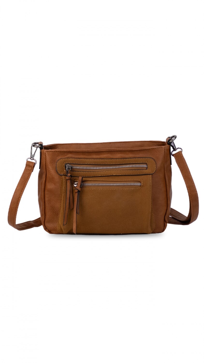 Bandolera en simil cuero con detalles en nobuck. Cuenta con cierre principal, así como cierres adicionales en la parte trasera y delantera para mayor comodidad y seguridad. Diseño práctico y elegante.