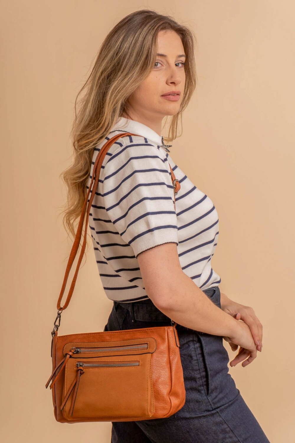 Bandolera en simil cuero con detalles en nobuck. Cuenta con cierre principal, así como cierres adicionales en la parte trasera y delantera para mayor comodidad y seguridad. Diseño práctico y elegante.