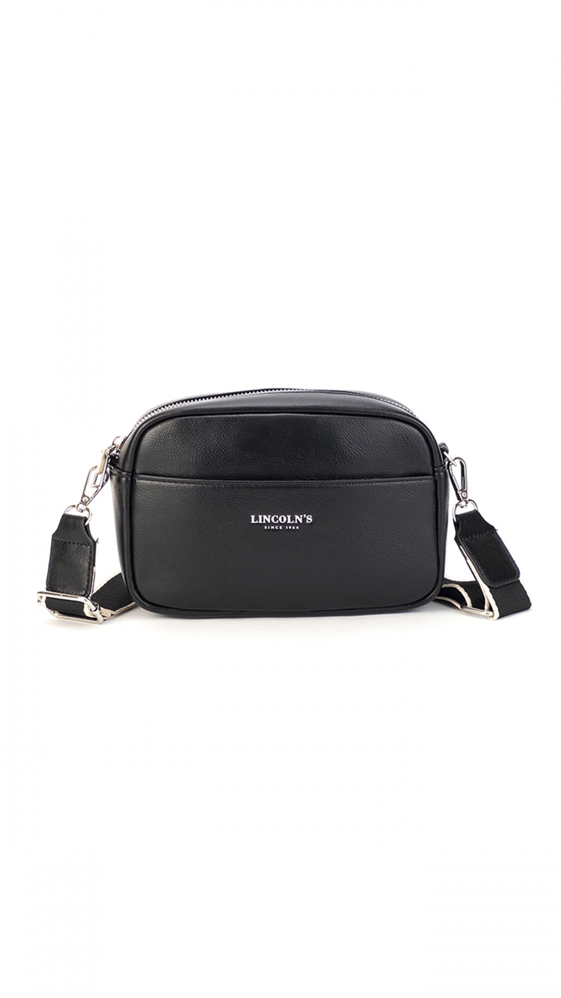 Incluye bolsillos internos y posterior. y correa de galón a tono larga y regulable.