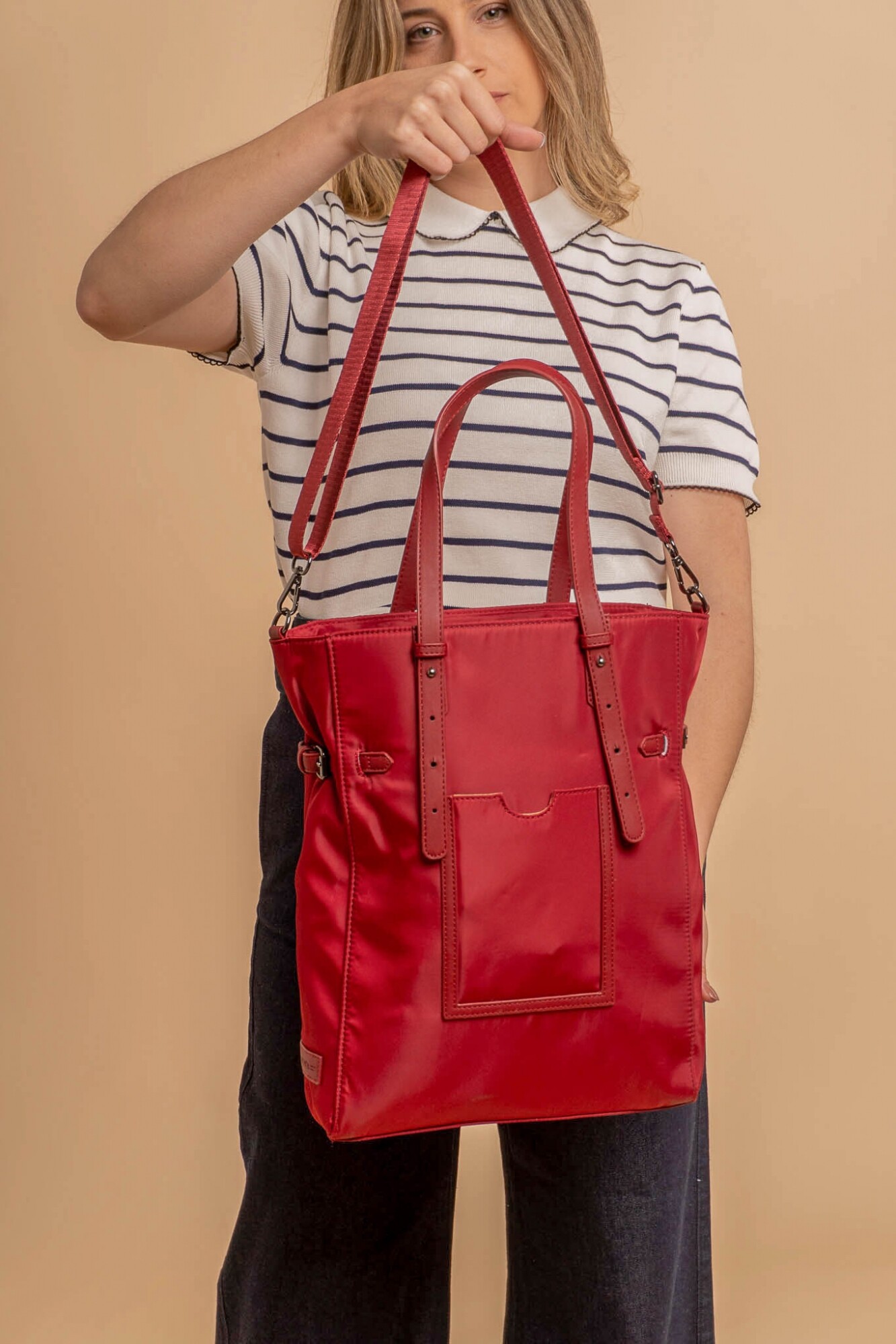 Bandolera elegante. Cuenta con asas dobles, correa ajustable y bolsillo frontal. Ideal para uso diario gracias a su diseño funcional y moderno.