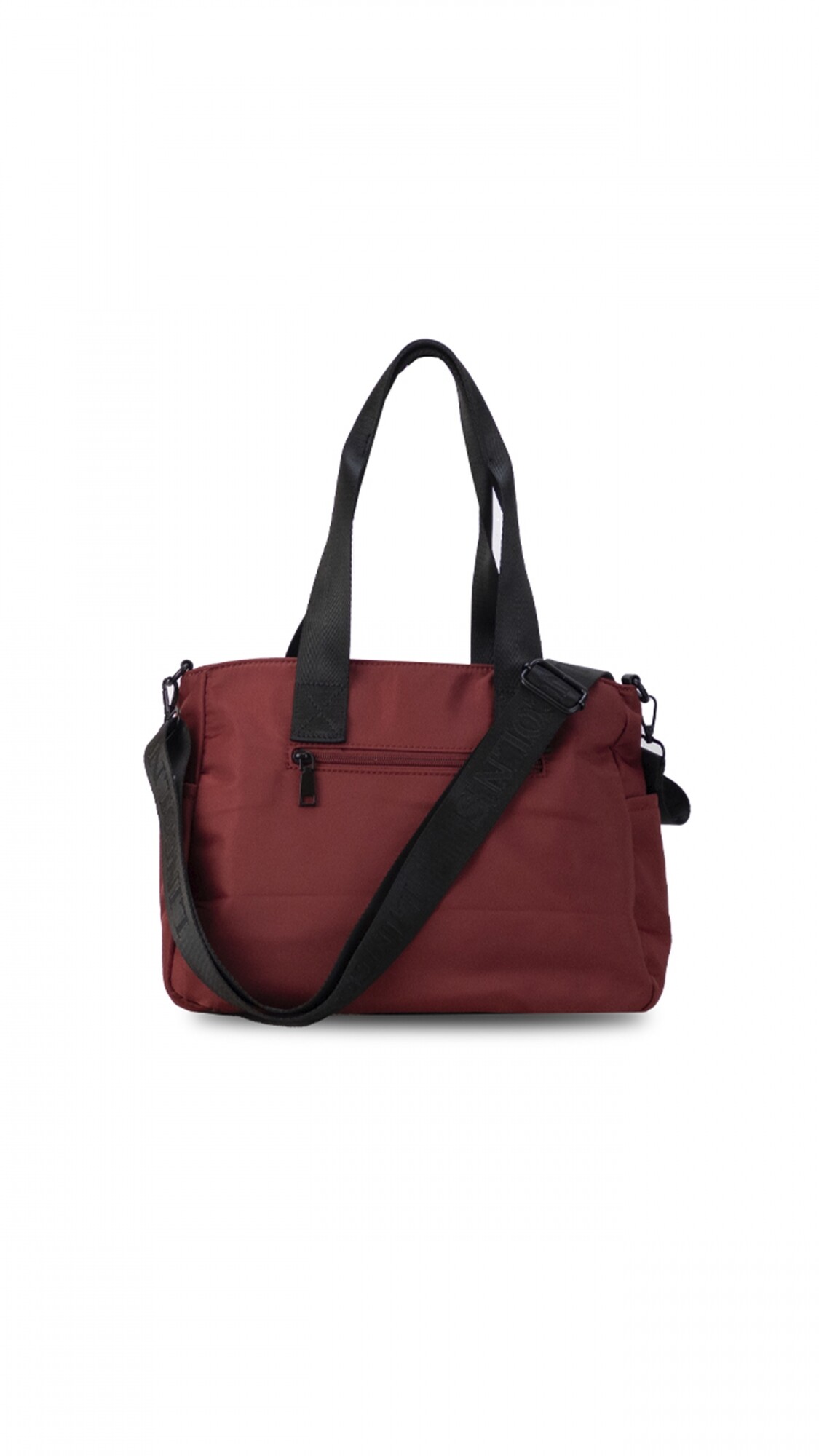 Bandolera con cierre y asa. Cuenta con varios bolsillos externos, tanto en la parte dorsal como en la frontal, ambos con cierre, y laterales abiertos para un acceso rápido. Incluye correa de galón extensible. Ideal para el uso diario.