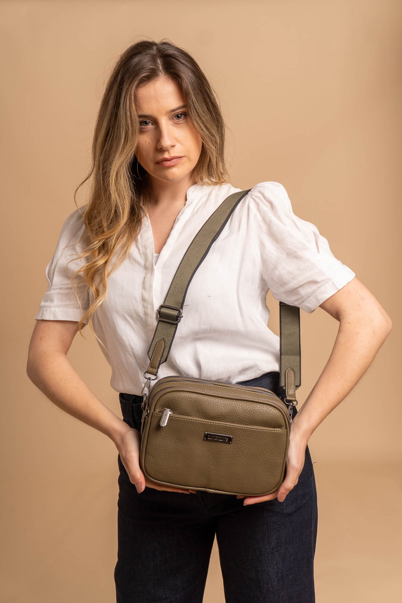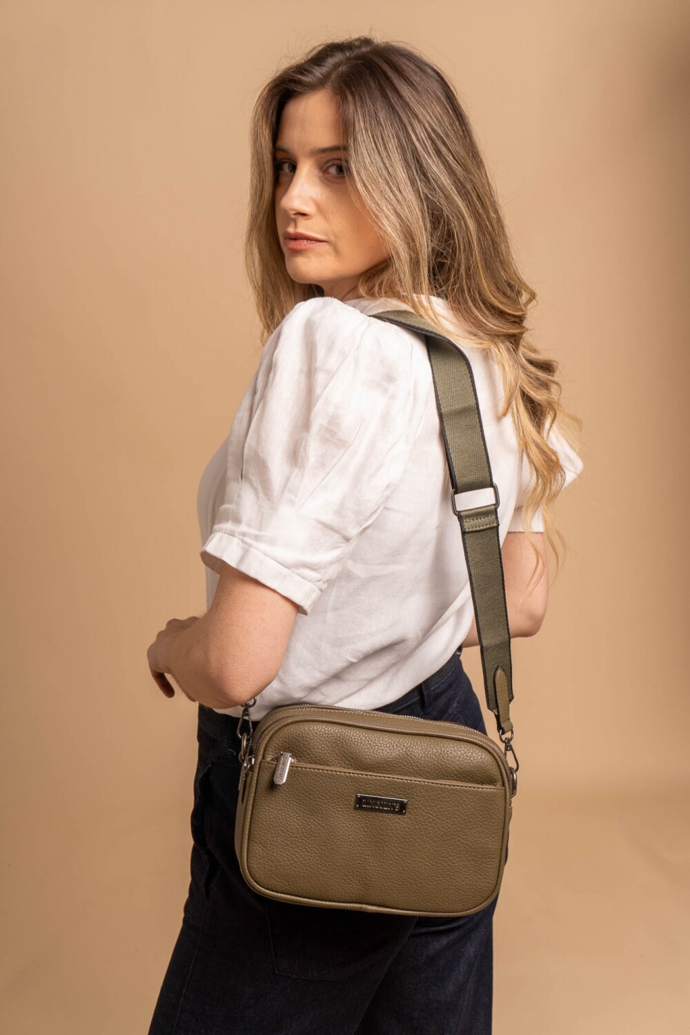 Bandolera con 3 cierres principales, cierre delantero y bolsillo trasero. Súper completa y práctica para guardar todo. Incluye correa ajustable para mayor comodidad y facilidad de uso. Ideal para el día a día.