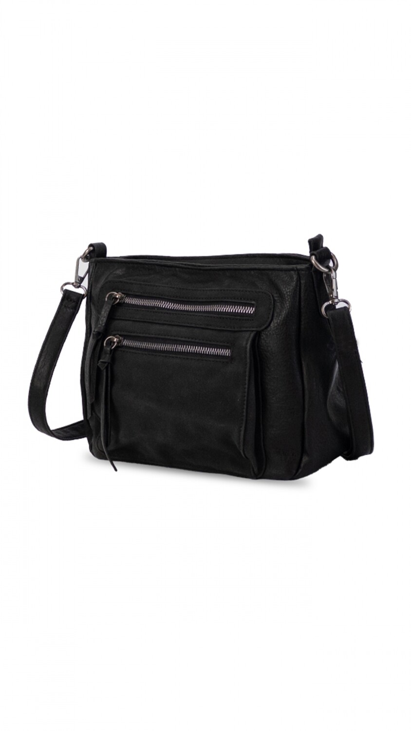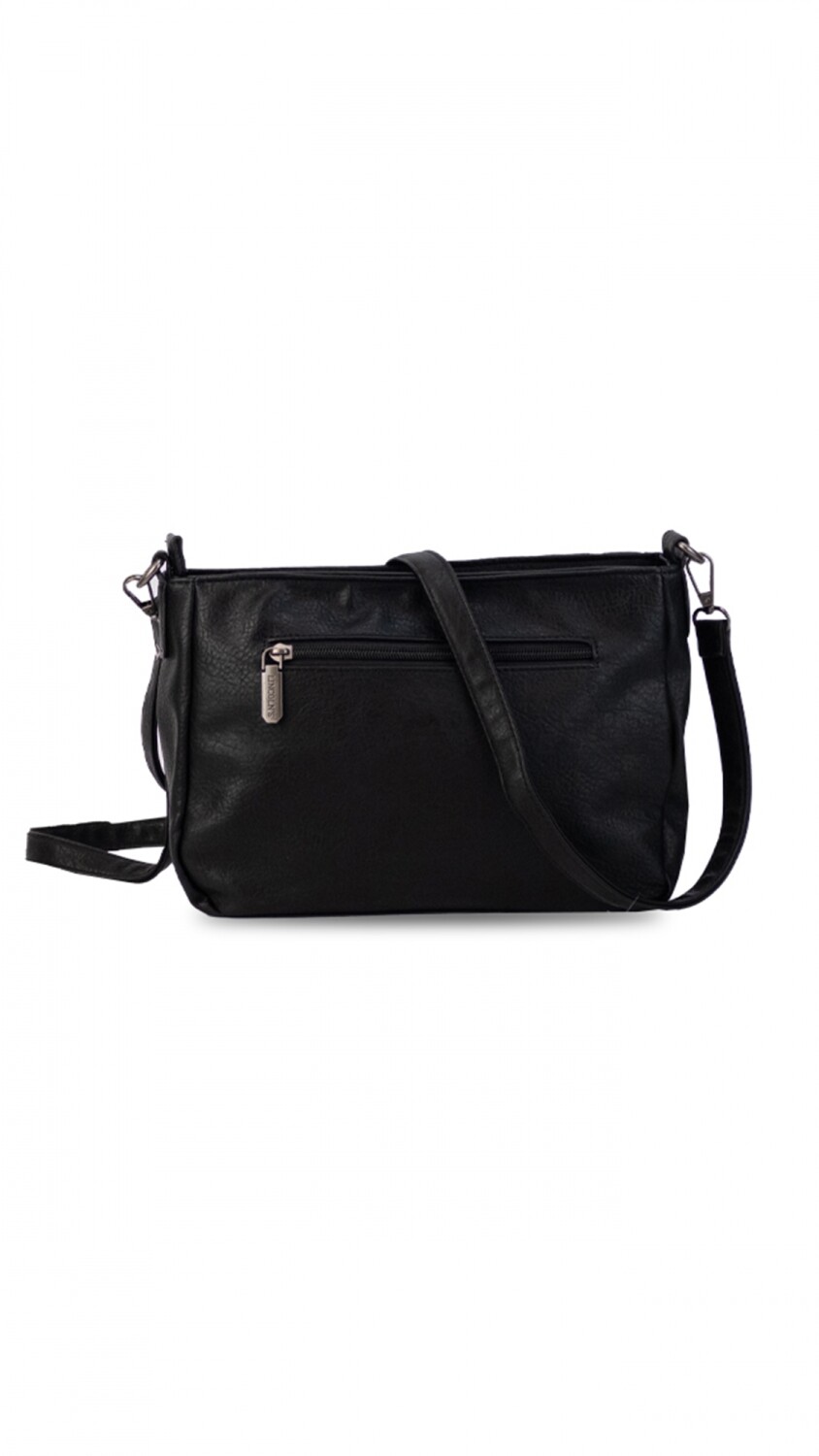 Bandolera en simil cuero con detalles en nobuck. Cuenta con cierre principal, así como cierres adicionales en la parte trasera y delantera para mayor comodidad y seguridad. Diseño práctico y elegante.