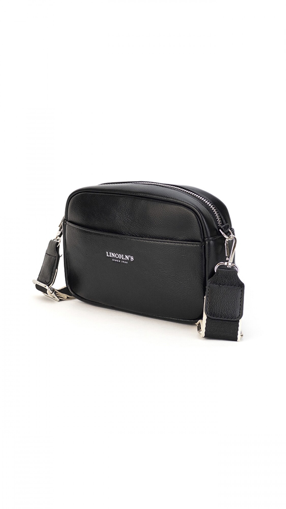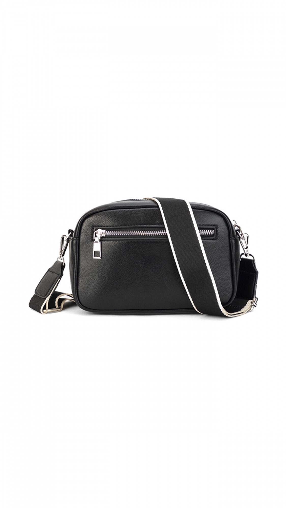 Incluye bolsillos internos y posterior. y correa de galón a tono larga y regulable.