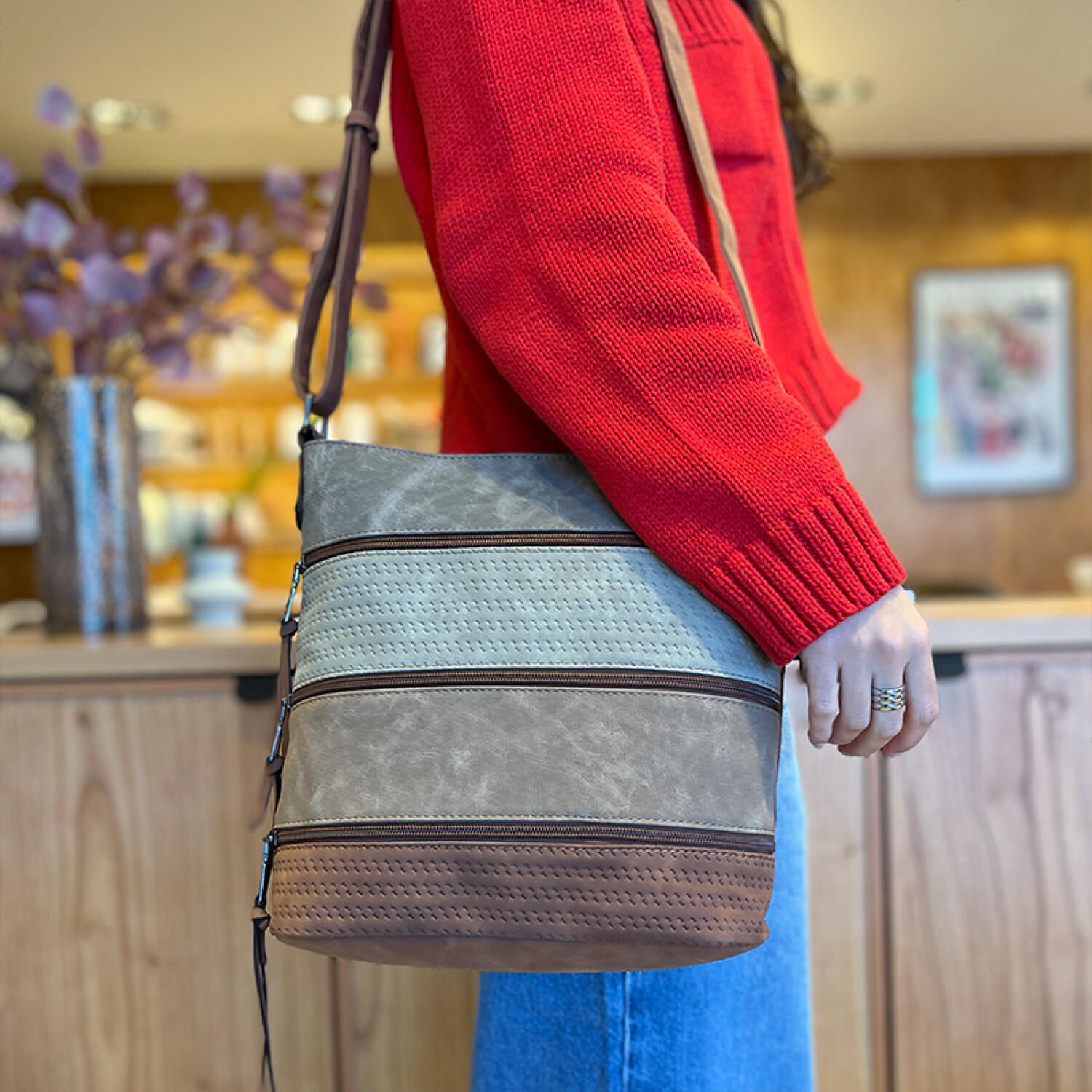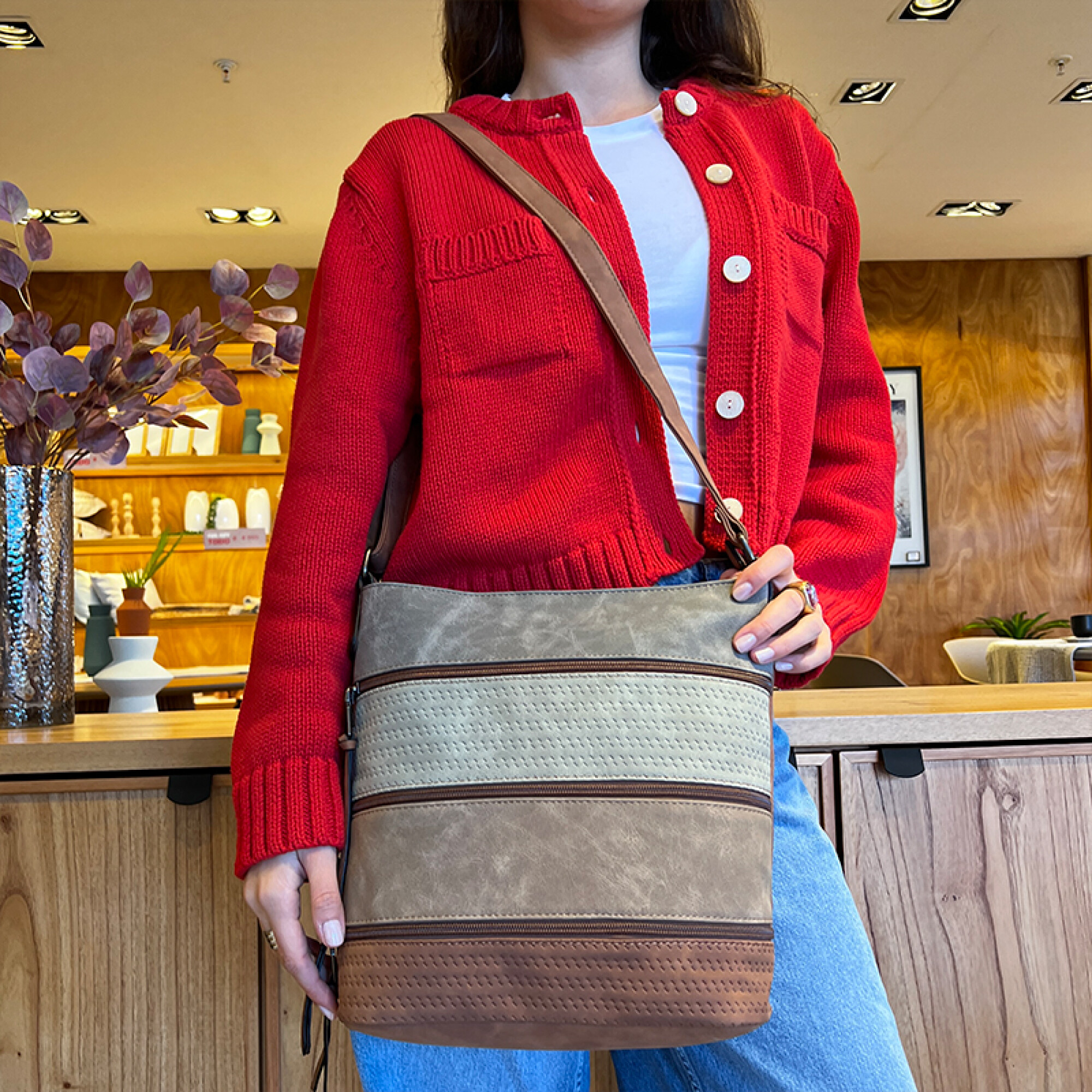 BANDOLERA MORRAL BUDAPEST - PLOMO, CEMENTO, TOSTADO Y HABANO