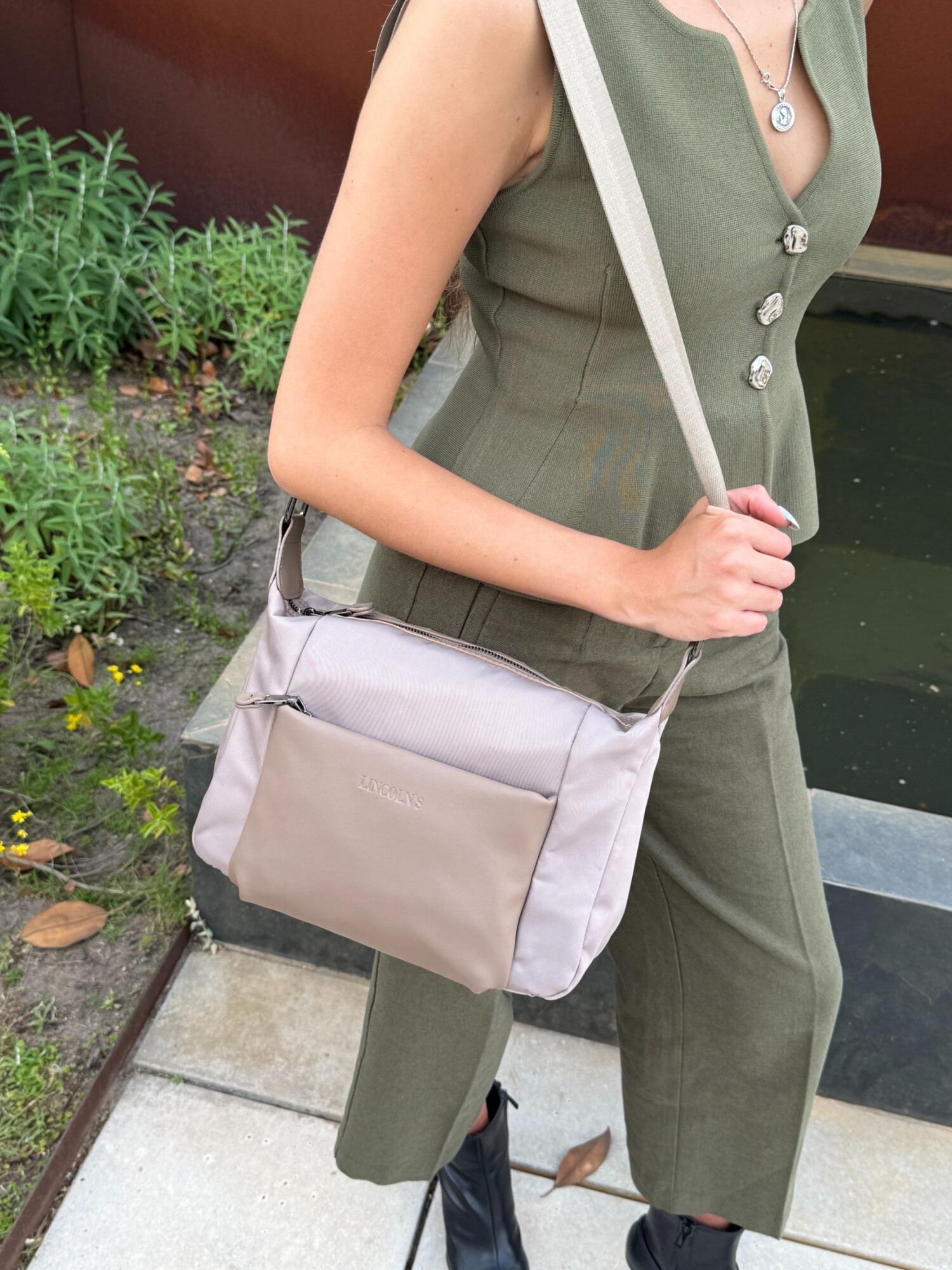 Bandolera de diseño practico y moderno, ideal para uso diario. Cuenta con correa regulable, amplio compartimiento principal y bolsillo frontal con cierre para mayor organización.