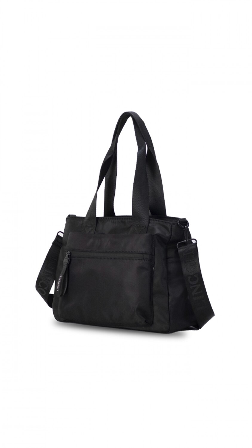 Bandolera con cierre y asa. Cuenta con varios bolsillos externos, tanto en la parte dorsal como en la frontal, ambos con cierre, y laterales abiertos para un acceso rápido. Incluye correa de galón extensible. Ideal para el uso diario.