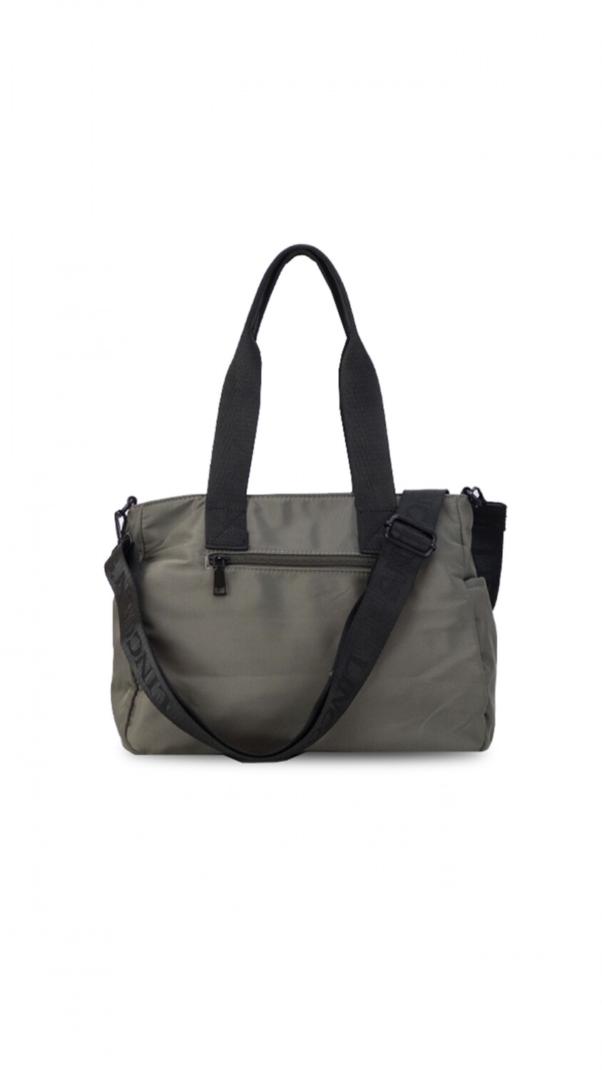 Bandolera con cierre y asa. Cuenta con varios bolsillos externos, tanto en la parte dorsal como en la frontal, ambos con cierre, y laterales abiertos para un acceso rápido. Incluye correa de galón extensible. Ideal para el uso diario.