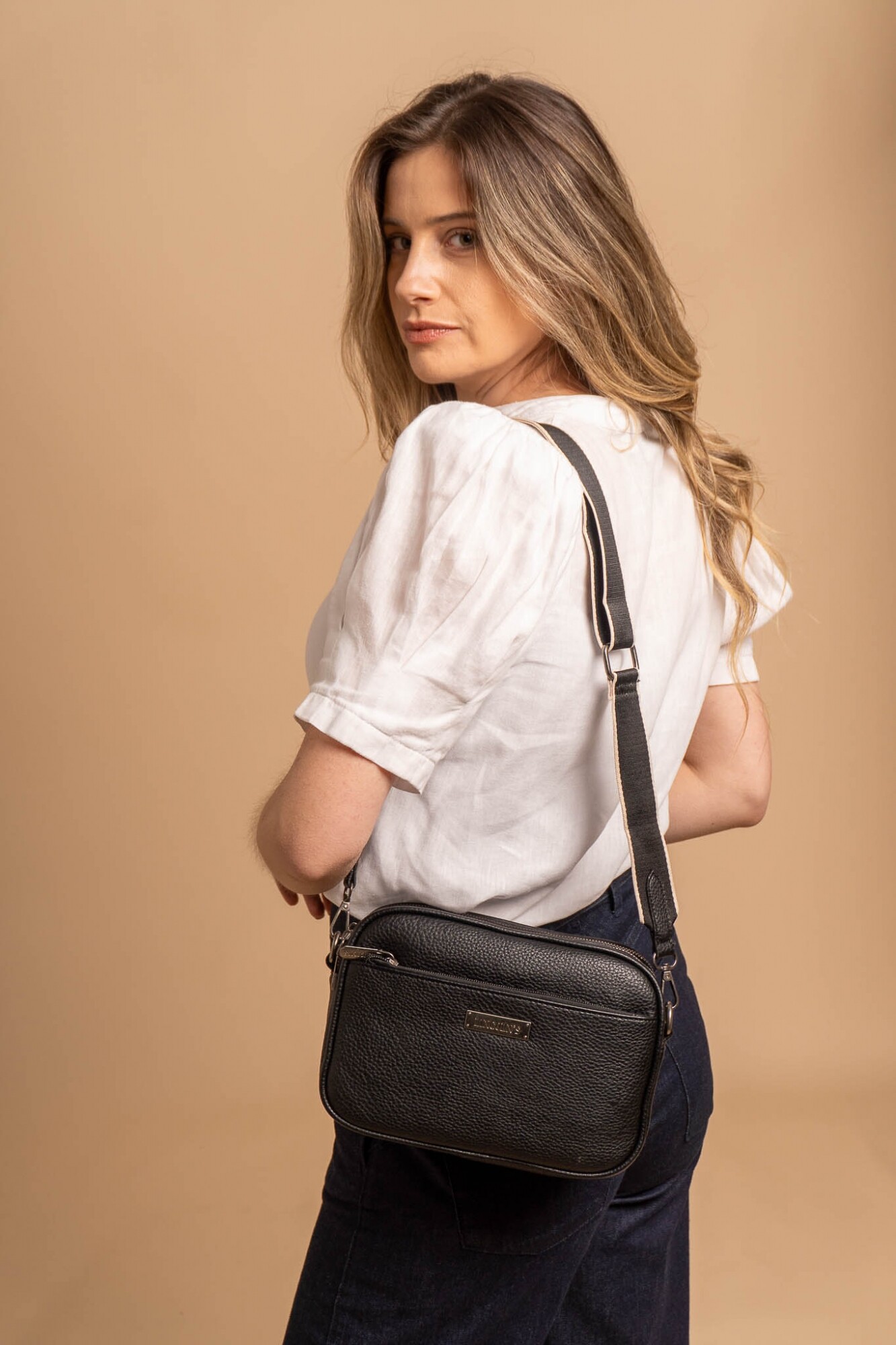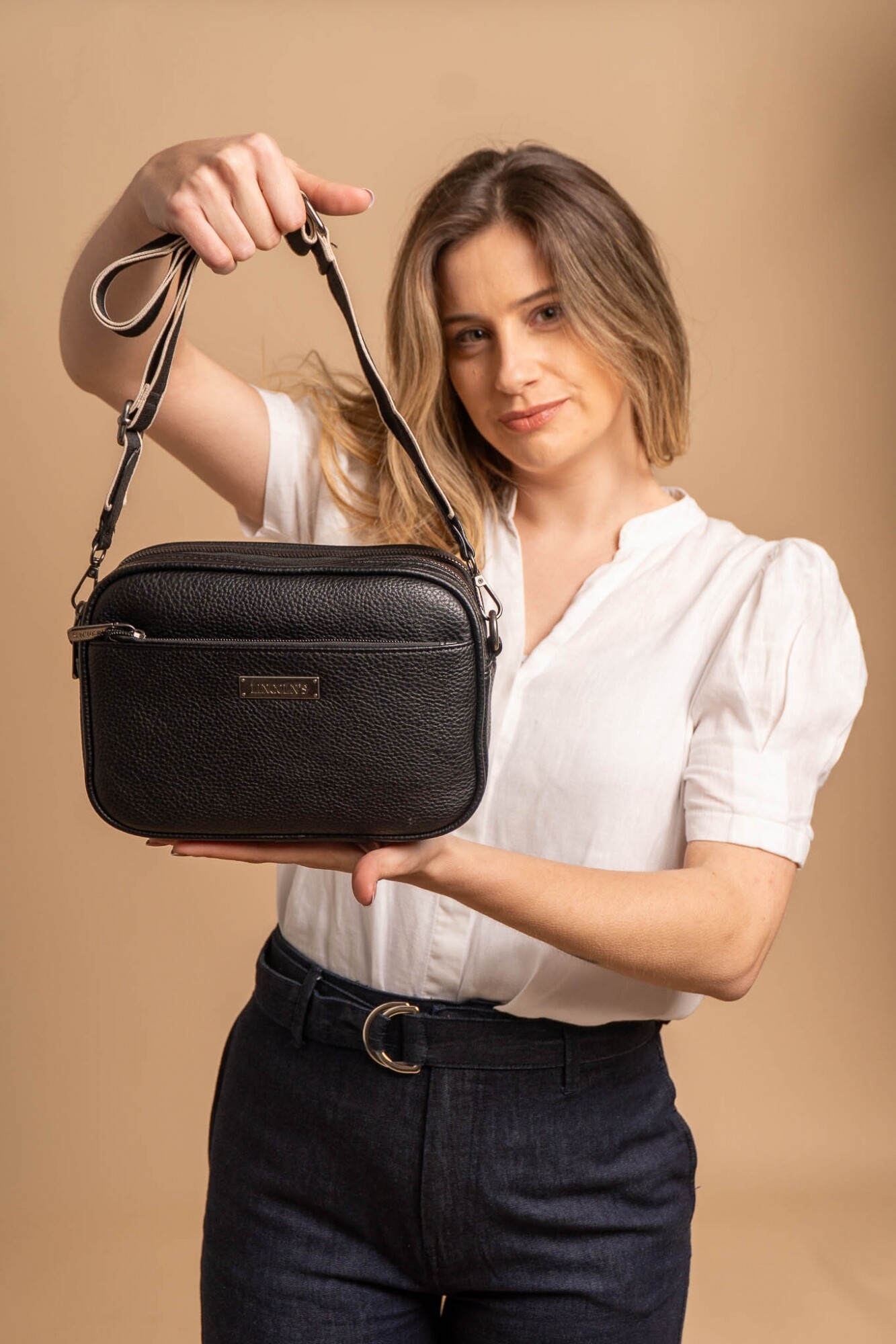 Bandolera con 3 cierres principales, cierre delantero y bolsillo trasero. Súper completa y práctica para guardar todo. Incluye correa ajustable para mayor comodidad y facilidad de uso. Ideal para el día a día.