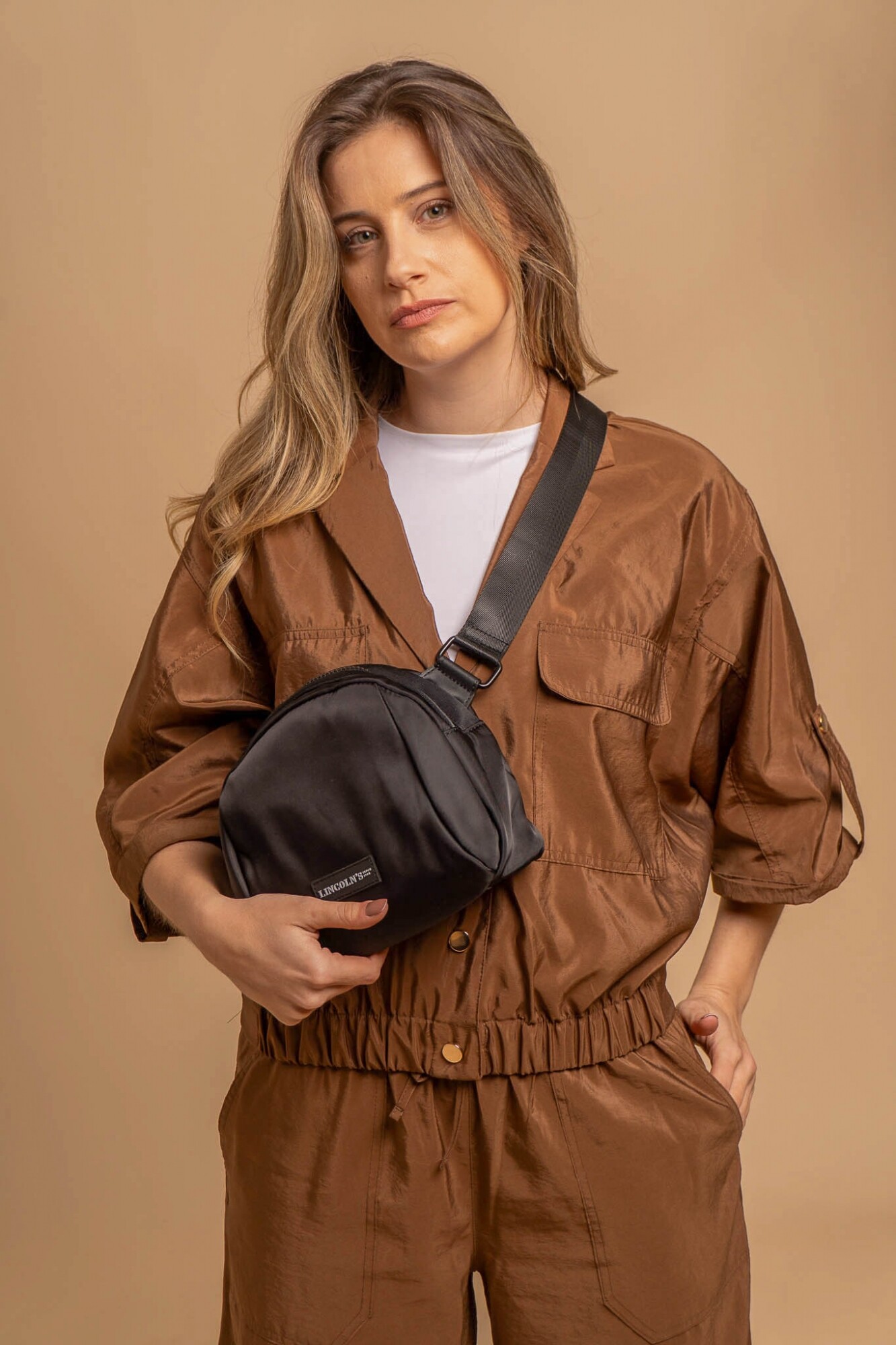Bandolera en tafeta liviana y resistente. Diseño moderno con correa ajustable ancha, cierre superior. ideal para uso diario, combina estilo y practicidad.