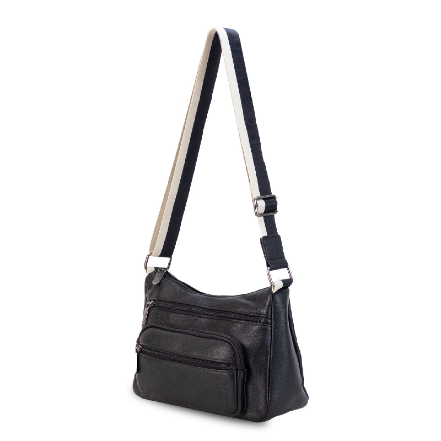 Bandolera con bolsillos frontales y cierre seguro. Cuenta con una correa extensible a tono, ajustable para mayor comodidad. Perfecta para llevar tus esenciales de forma práctica y estilizada.