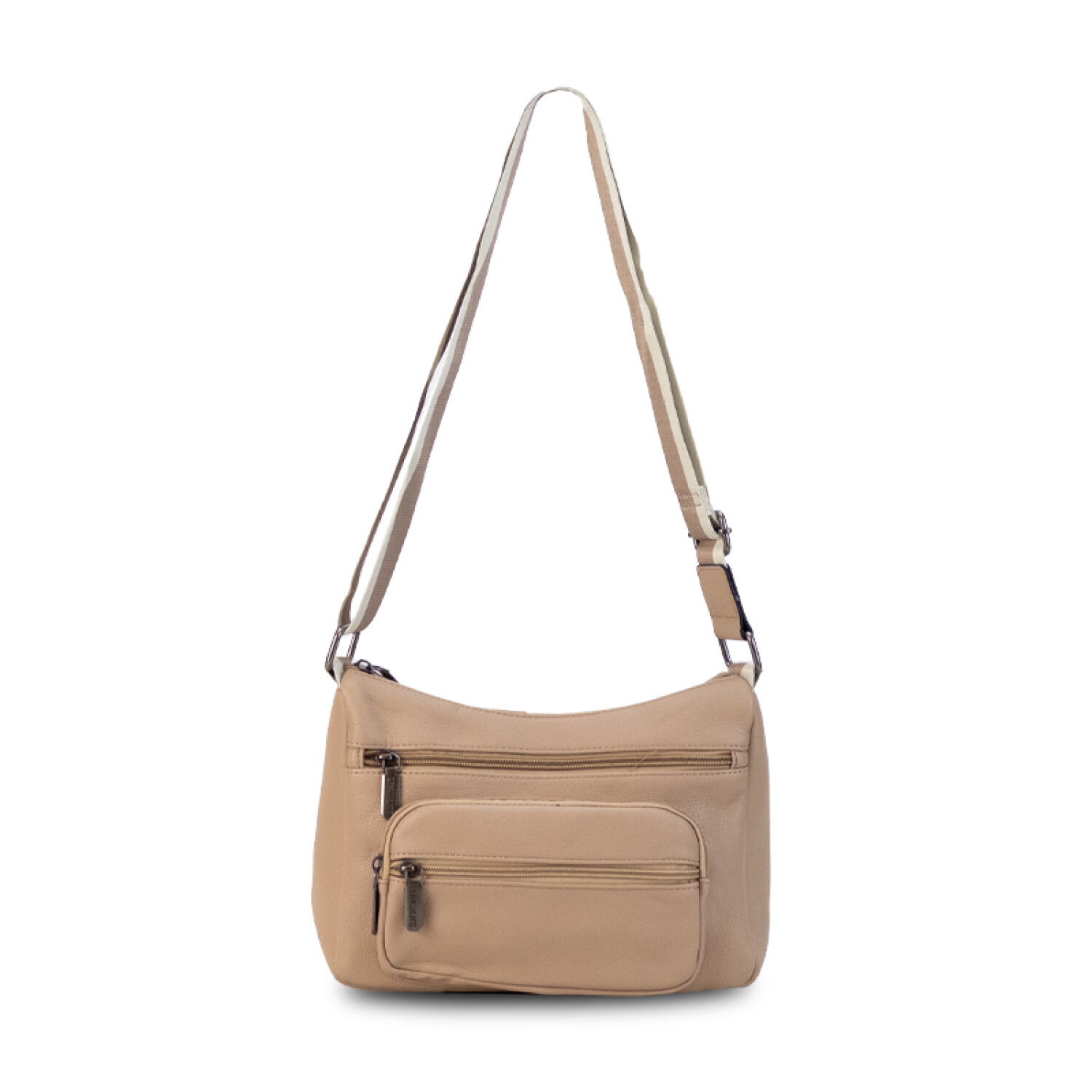 Bandolera con bolsillos frontales y cierre seguro. Cuenta con una correa extensible a tono, ajustable para mayor comodidad. Perfecta para llevar tus esenciales de forma práctica y estilizada.