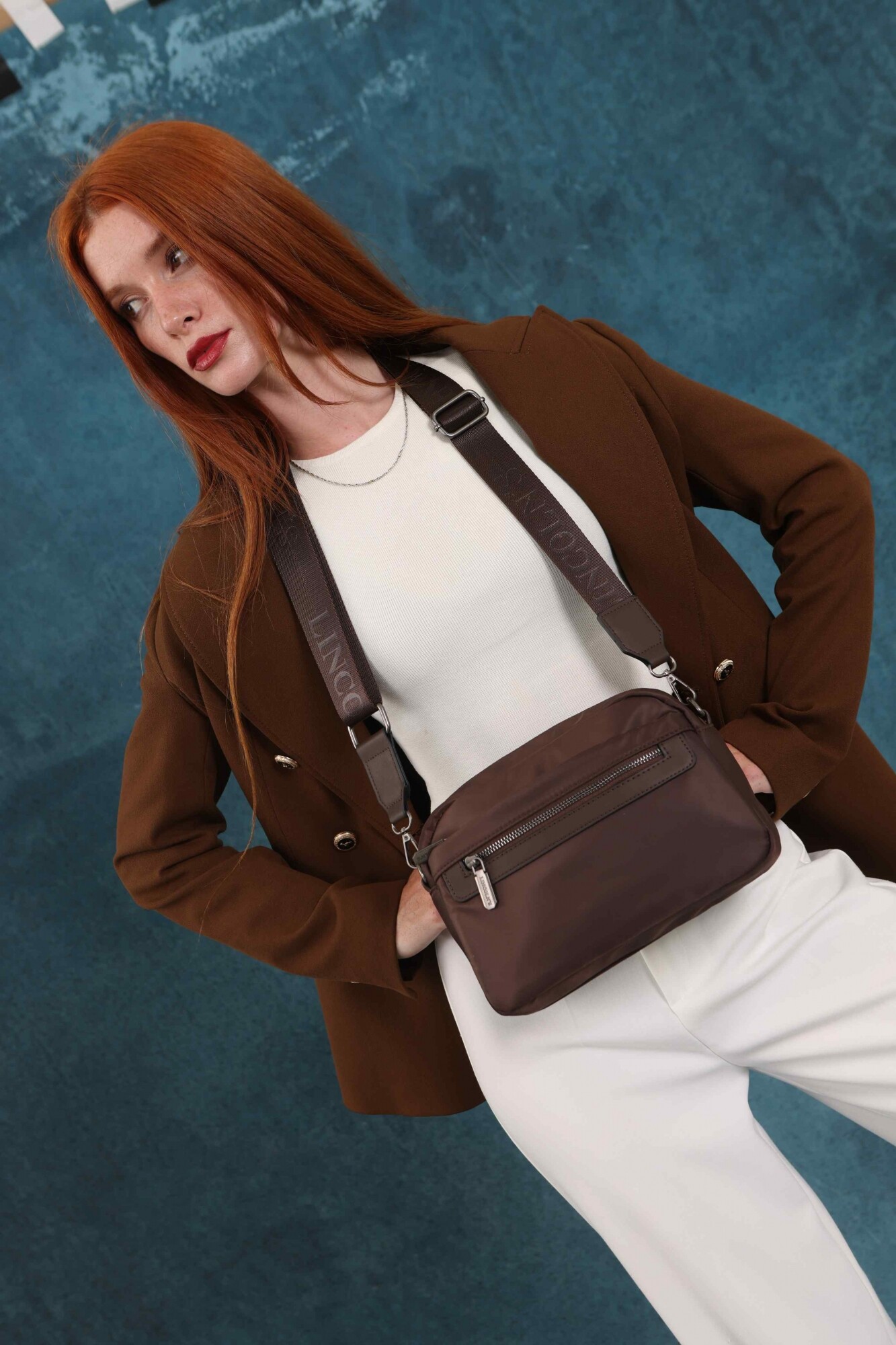 Bandolera , con múltiples cremalleras metálicas, correa ajustable ancha y herrajes plateados. Diseño moderno y funcional.