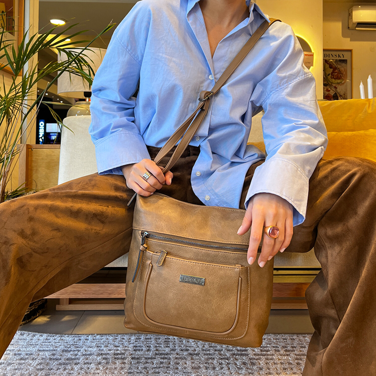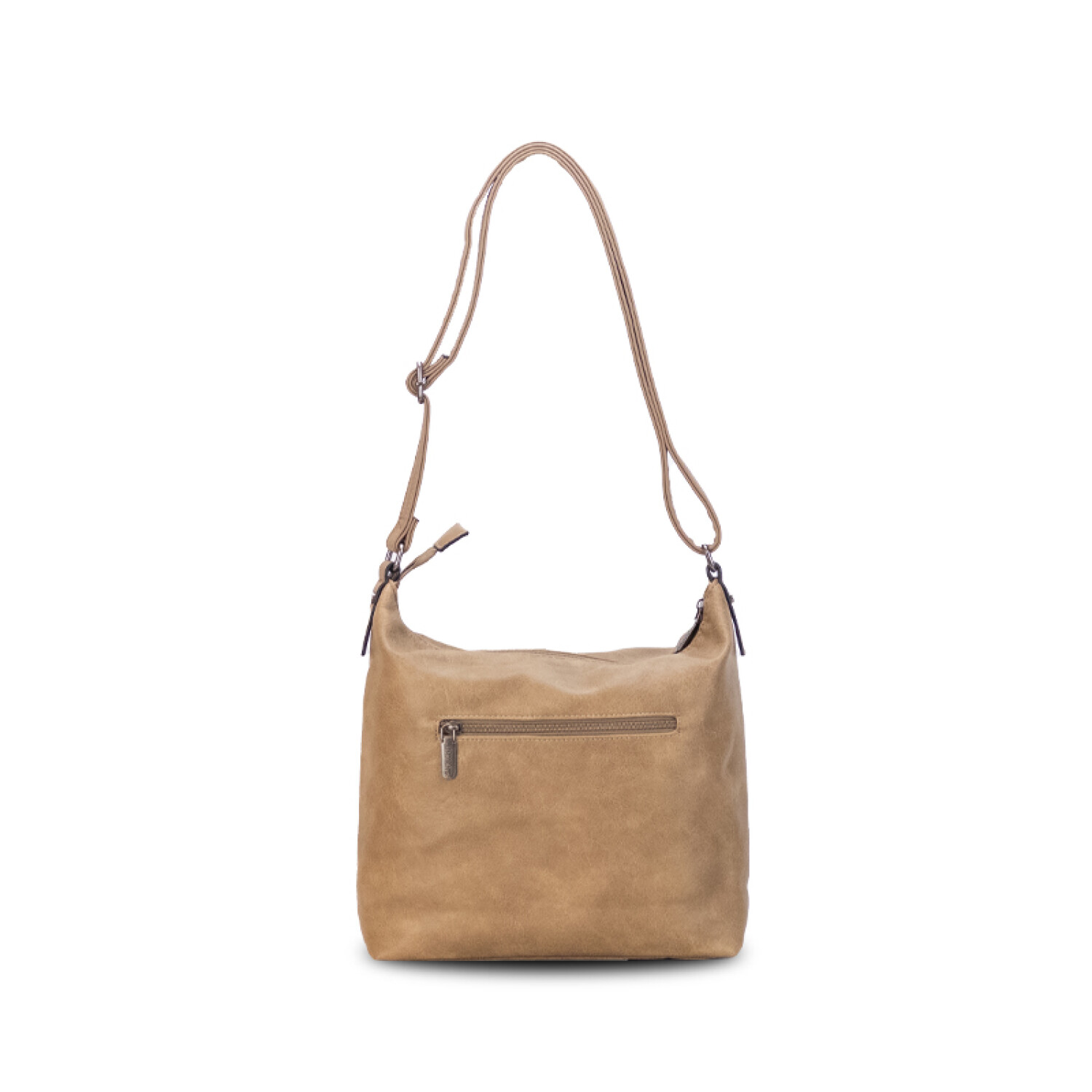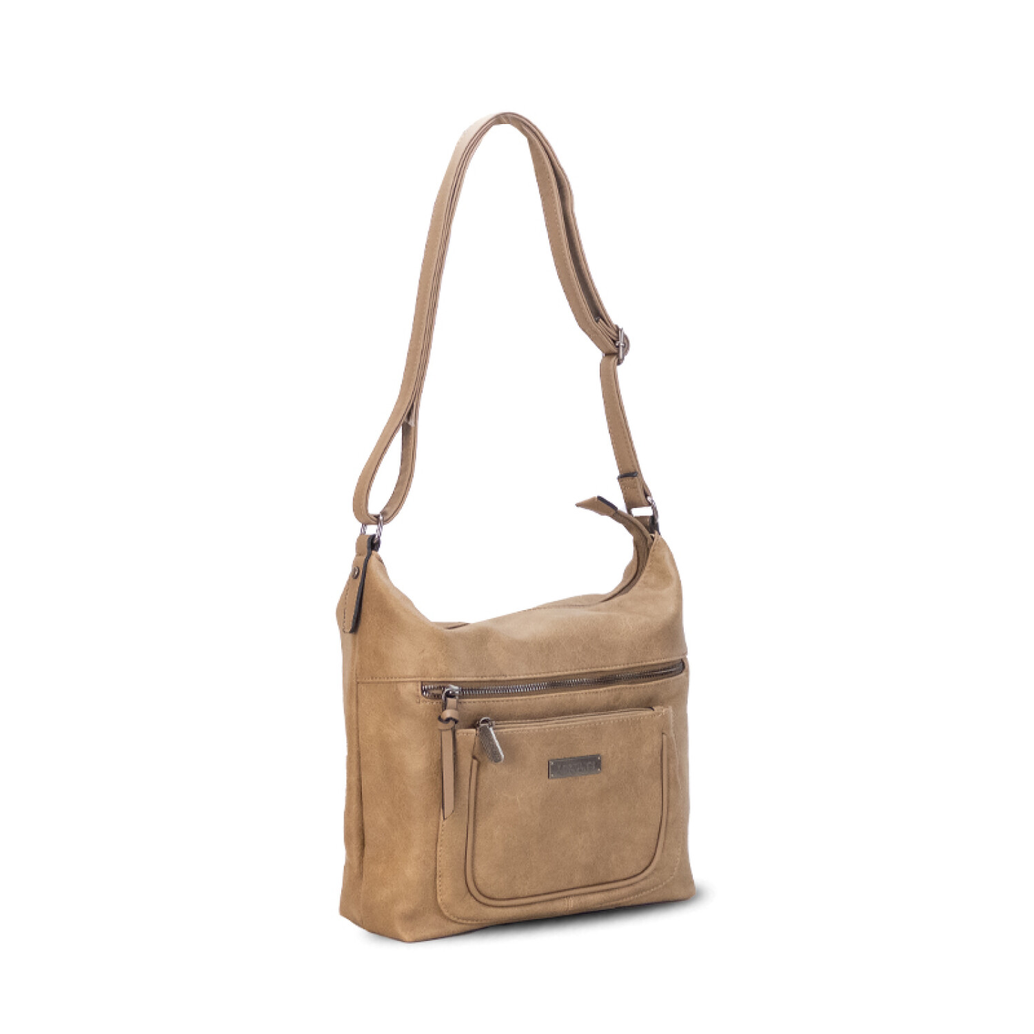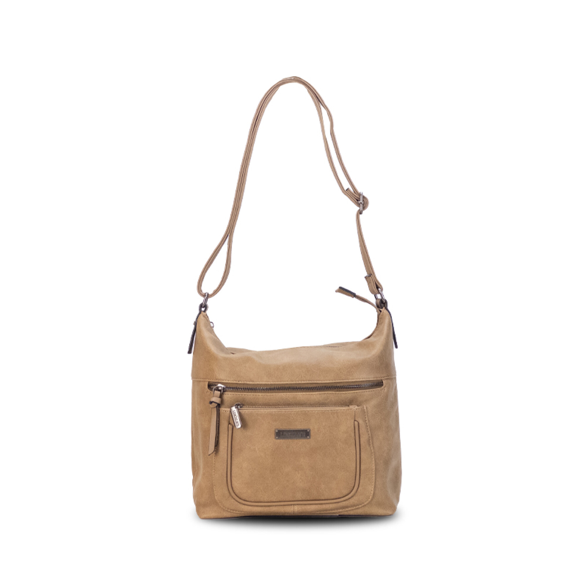 Bandolera en símil cuero con dos bolsillos al frente con cierre.