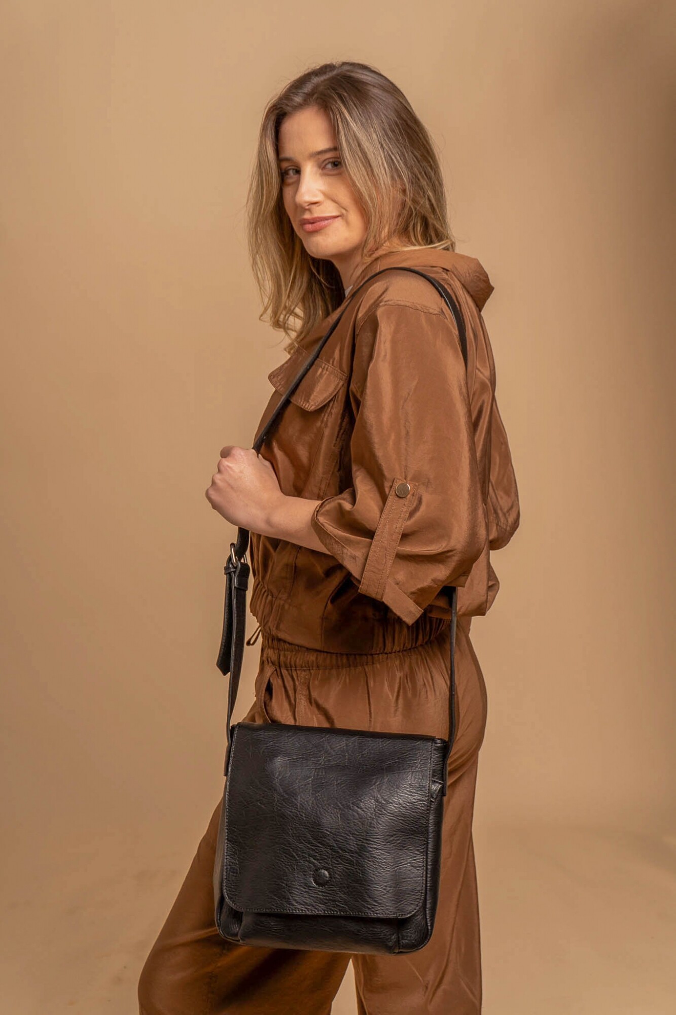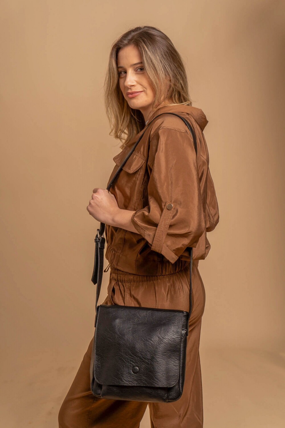 Bandolera con tapa de diseño simple. Con división interna y bolsillos internos, con correa ajustable para mayor comodidad. ideal para uso diario, super practica.