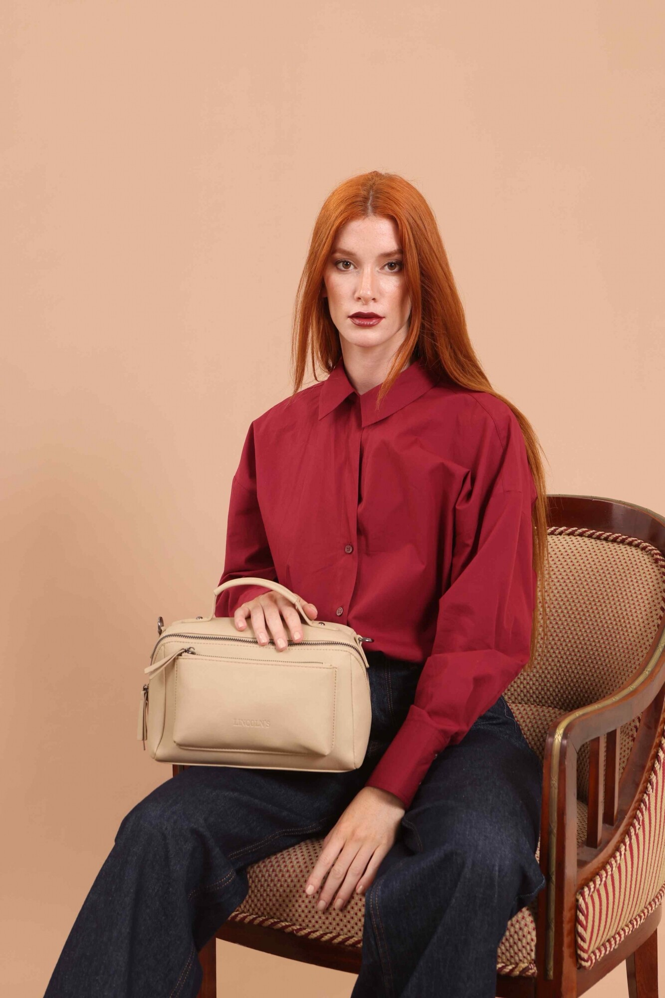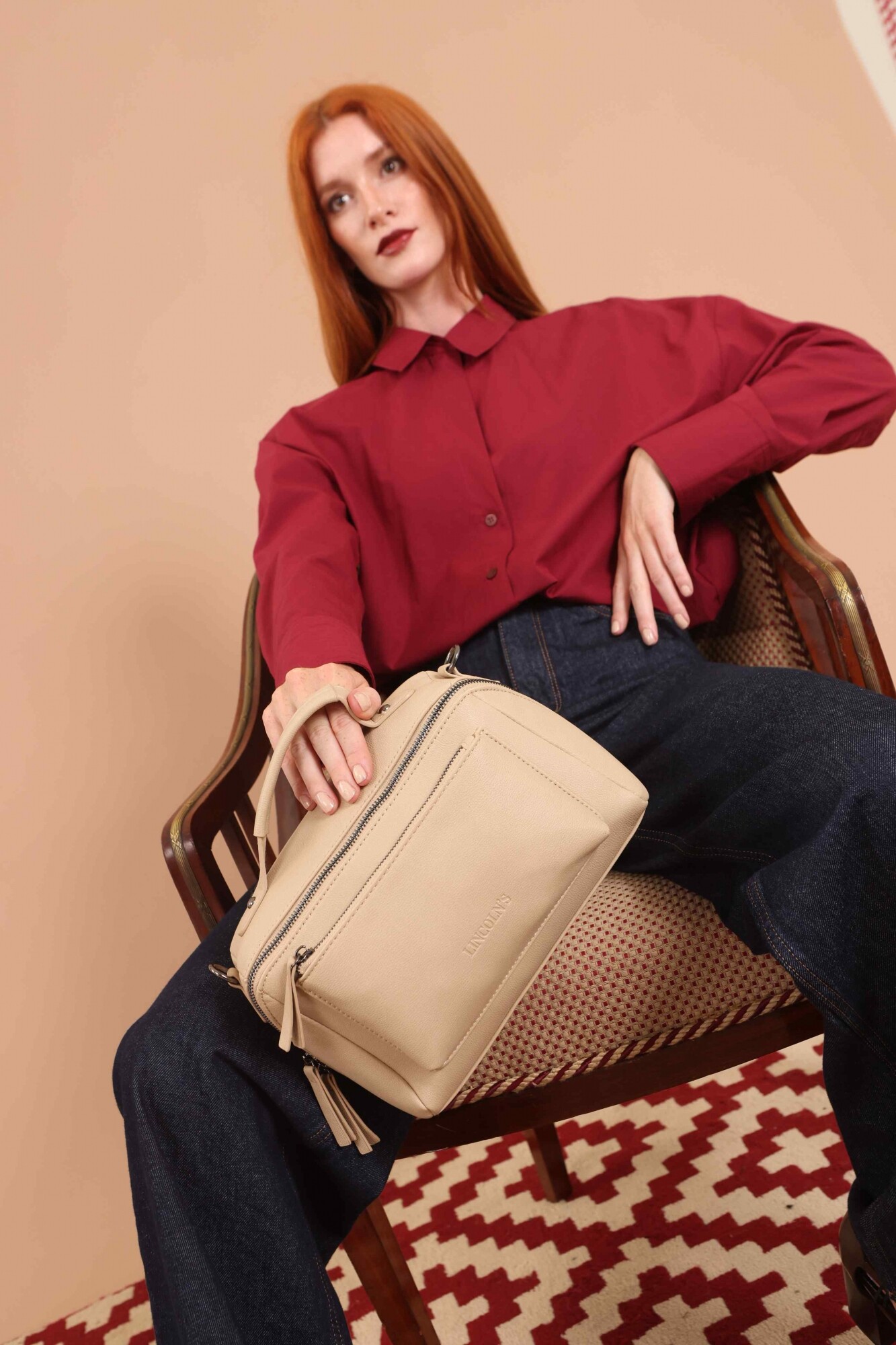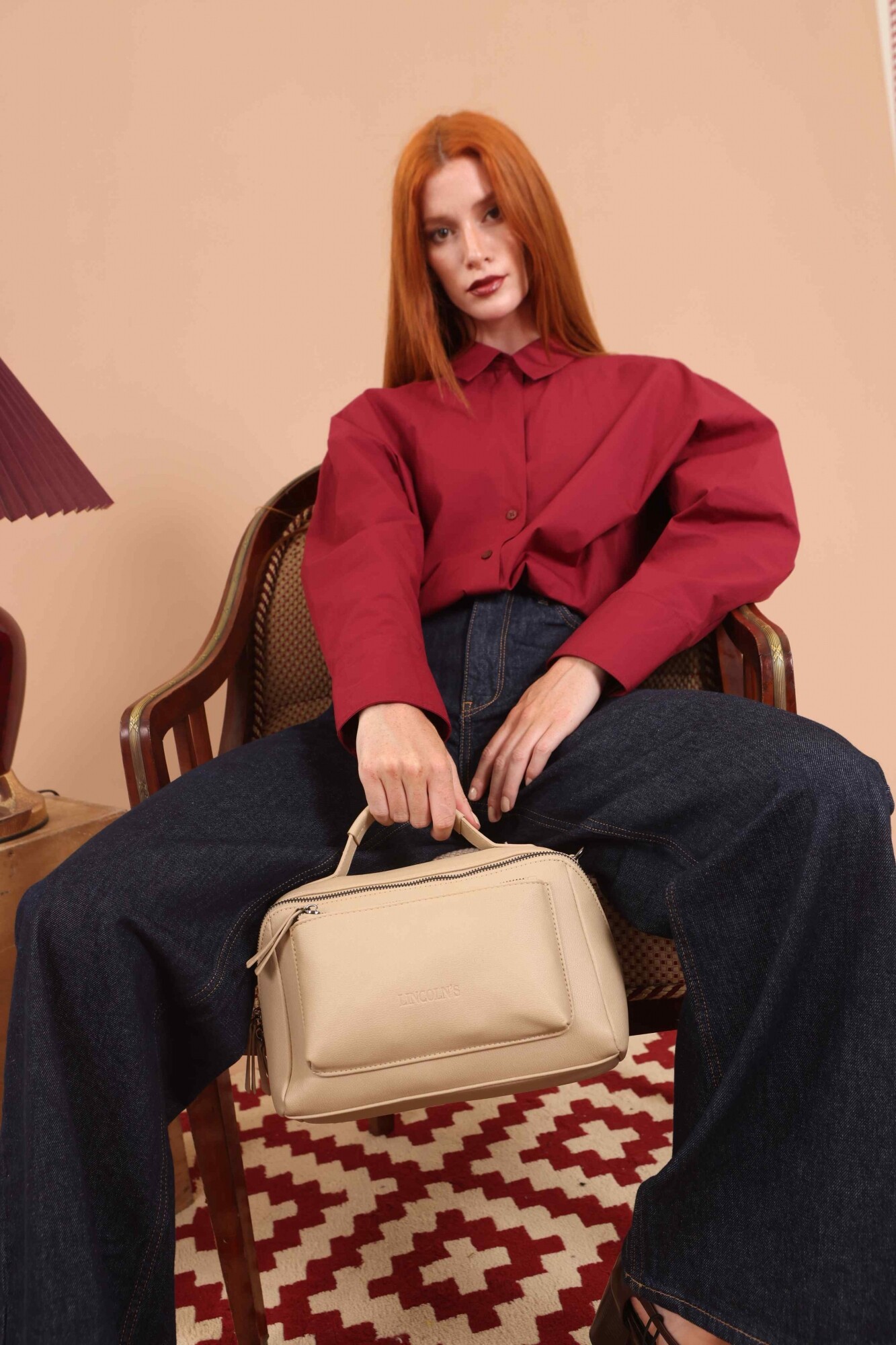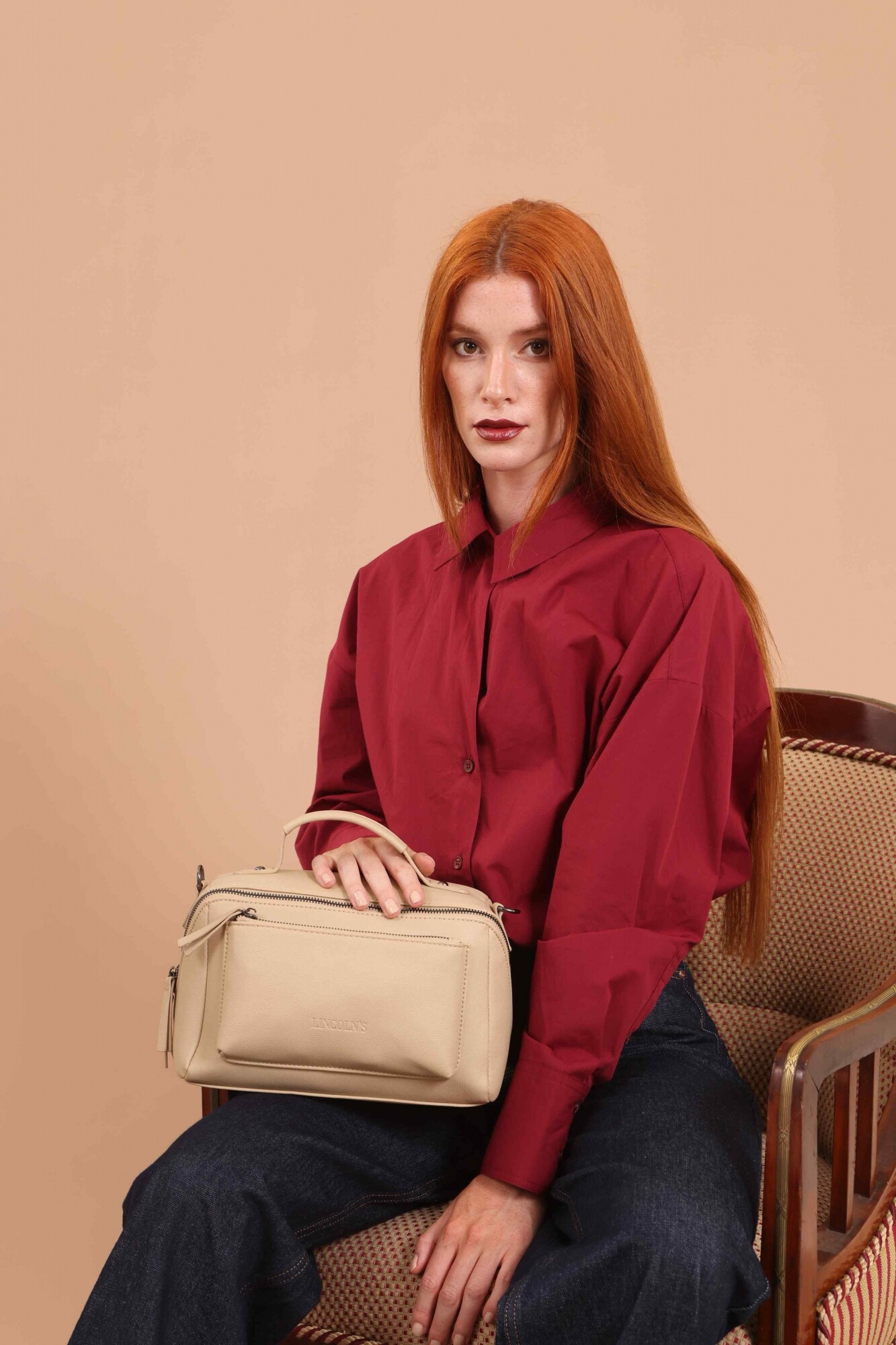 Bandolera con asa superior, y correa larga ajustable. Dos bolsillos frontales, uno de ellos con cierre cruzado generando un diseño práctico y elegante.