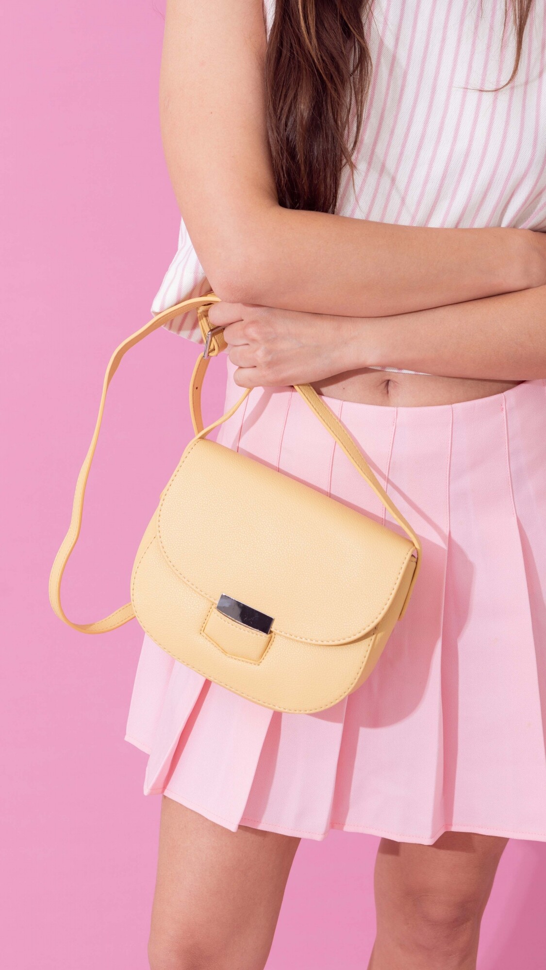Bandolera de símil cuero, elegante y moderna, cuenta con tapa y presilla para mayor seguridad. Su correa extensible permite un ajuste cómodo, ideal para cualquier ocasión.