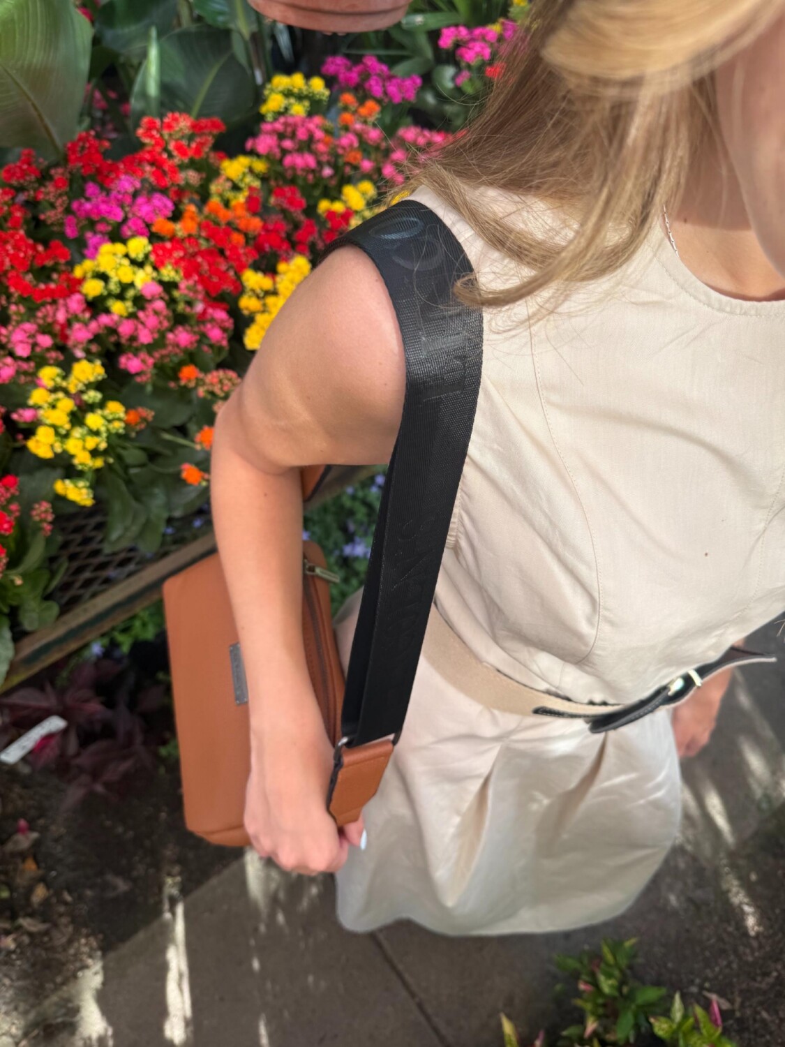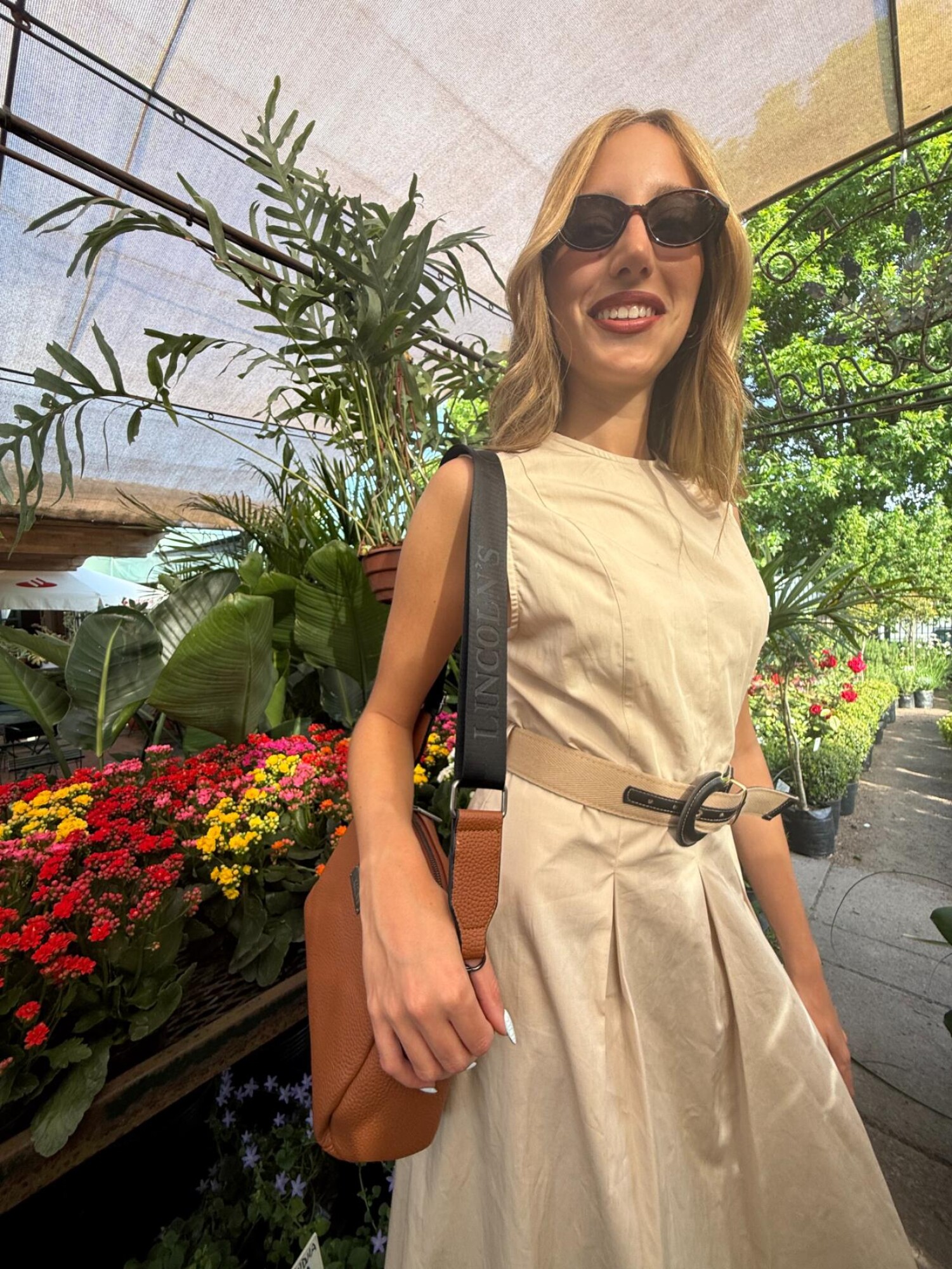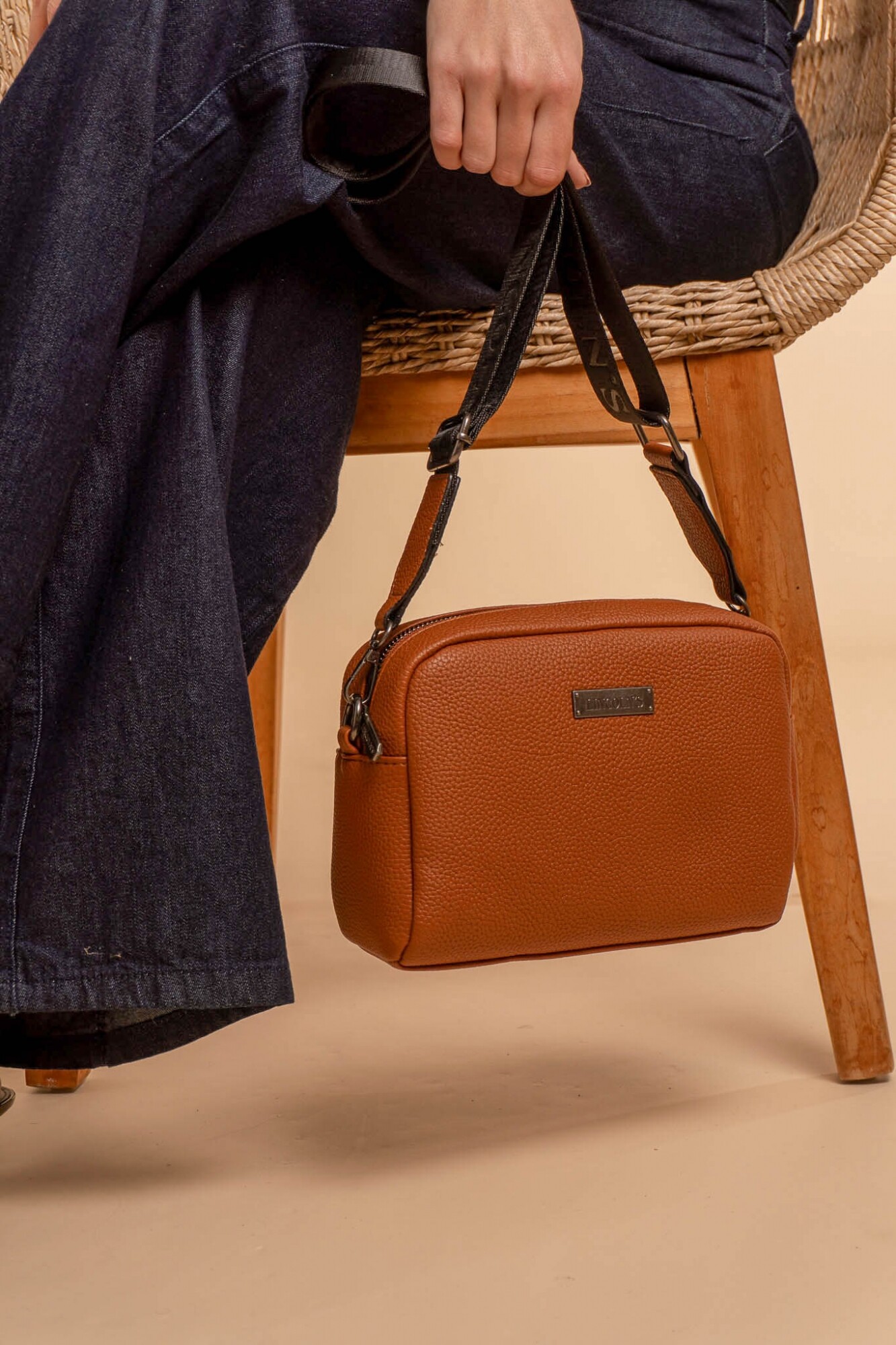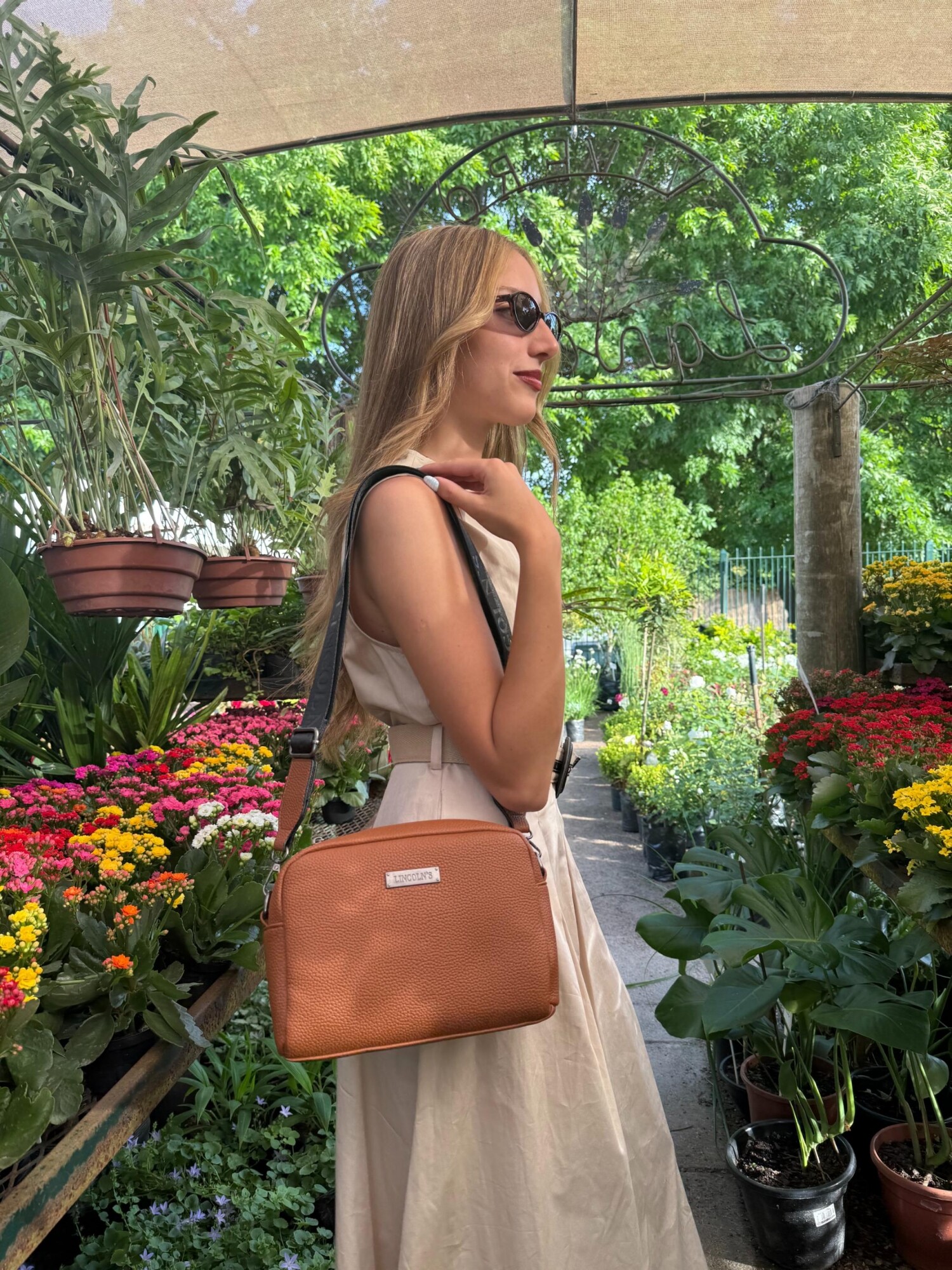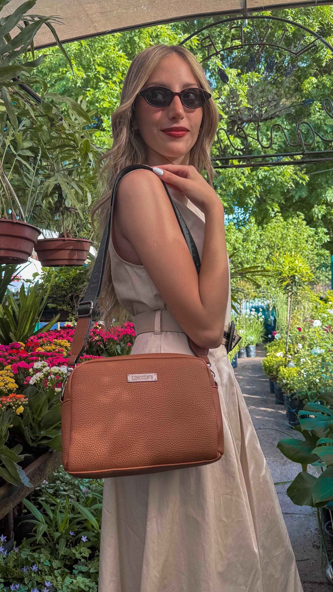 Bandolera compacta con textura tipo piel, correa ajustable negra con logo “LINCOLN’S” en relieve. Diseño moderno y versátil, ideal para uso diario o casual.