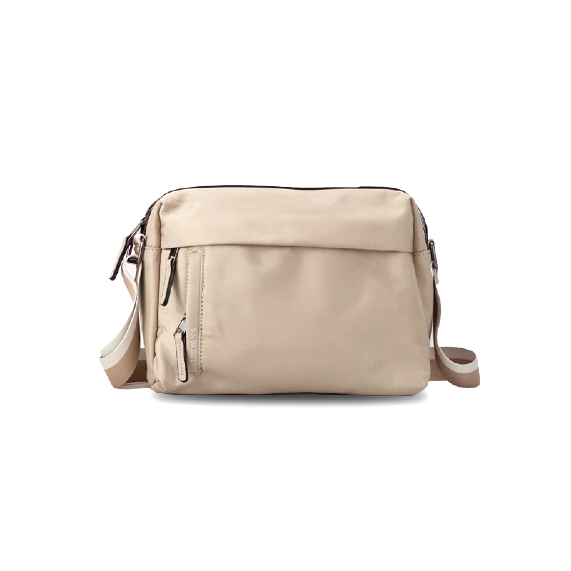 Bandolera con correa de galón a tono, dos bolsillos frontales con cierre y uno dorsal. Su bolsillo principal incluye reparticiones internas, ideal para mantener tus pertenencias organizadas y seguras.