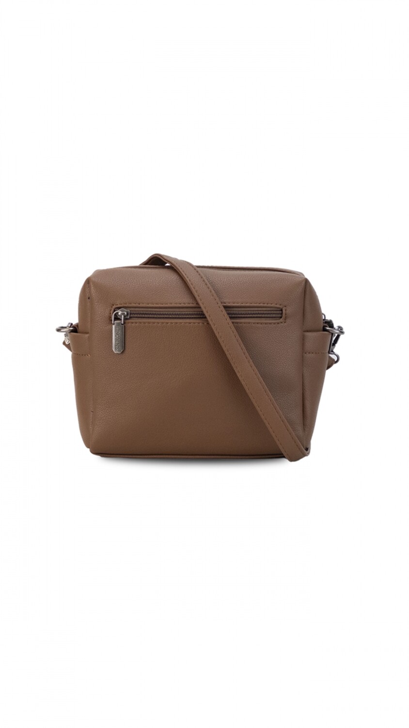 Bandolera versátil con cierre principal, equipada con bolsillos interiores para organización. Cuenta con un bolsillo frontal y otro posterior con cierres, además de bolsillos laterales. Incluye correa extensible para mayor comodidad.