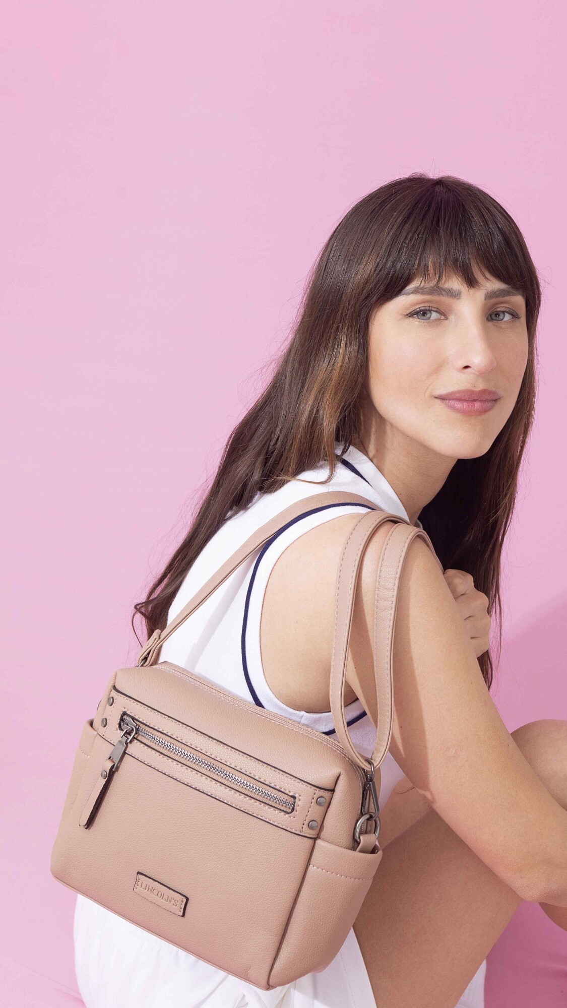 Bandolera versátil con cierre principal, equipada con bolsillos interiores para organización. Cuenta con un bolsillo frontal y otro posterior con cierres, además de bolsillos laterales. Incluye correa extensible para mayor comodidad.