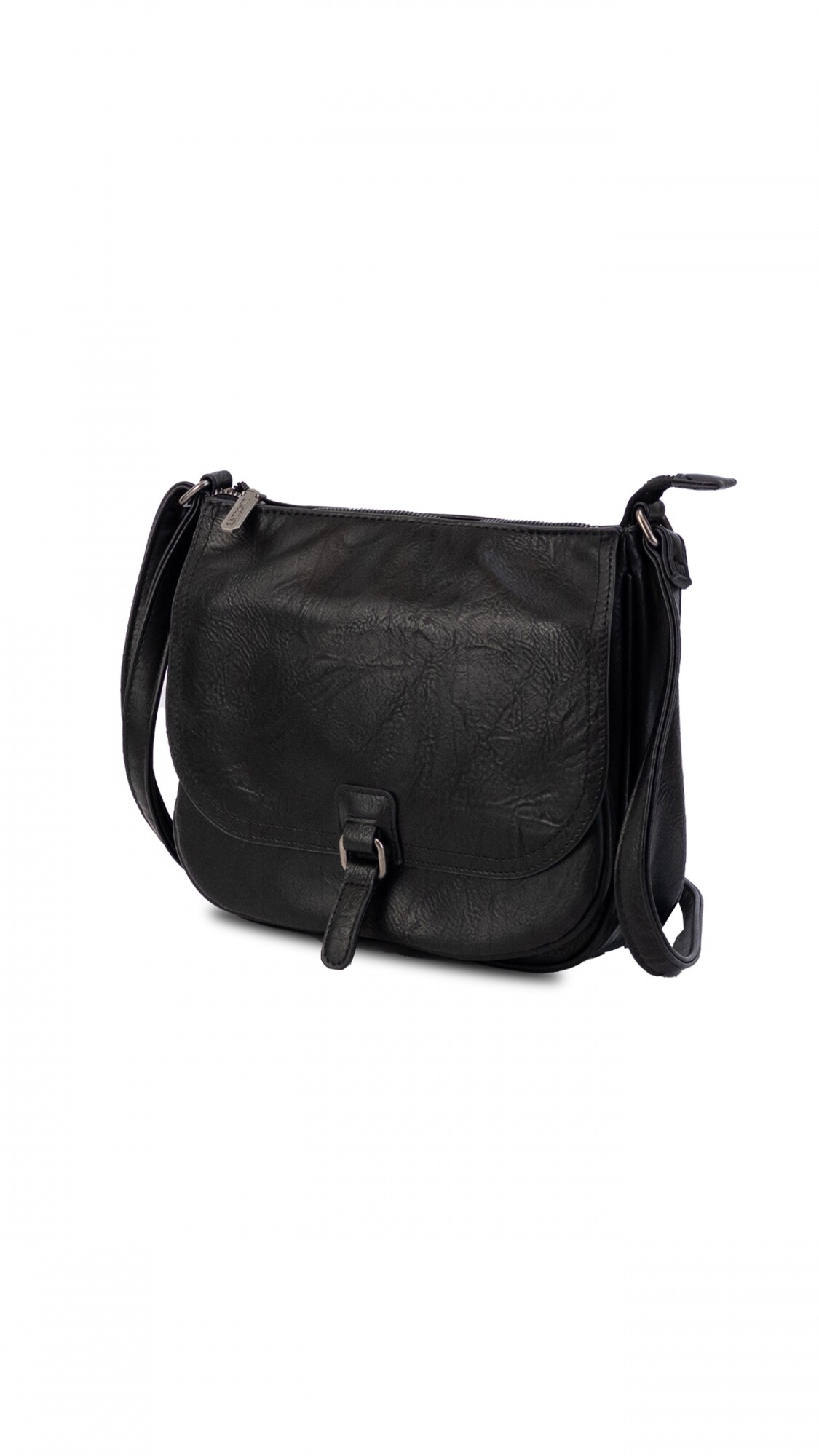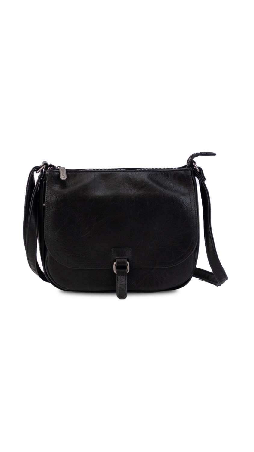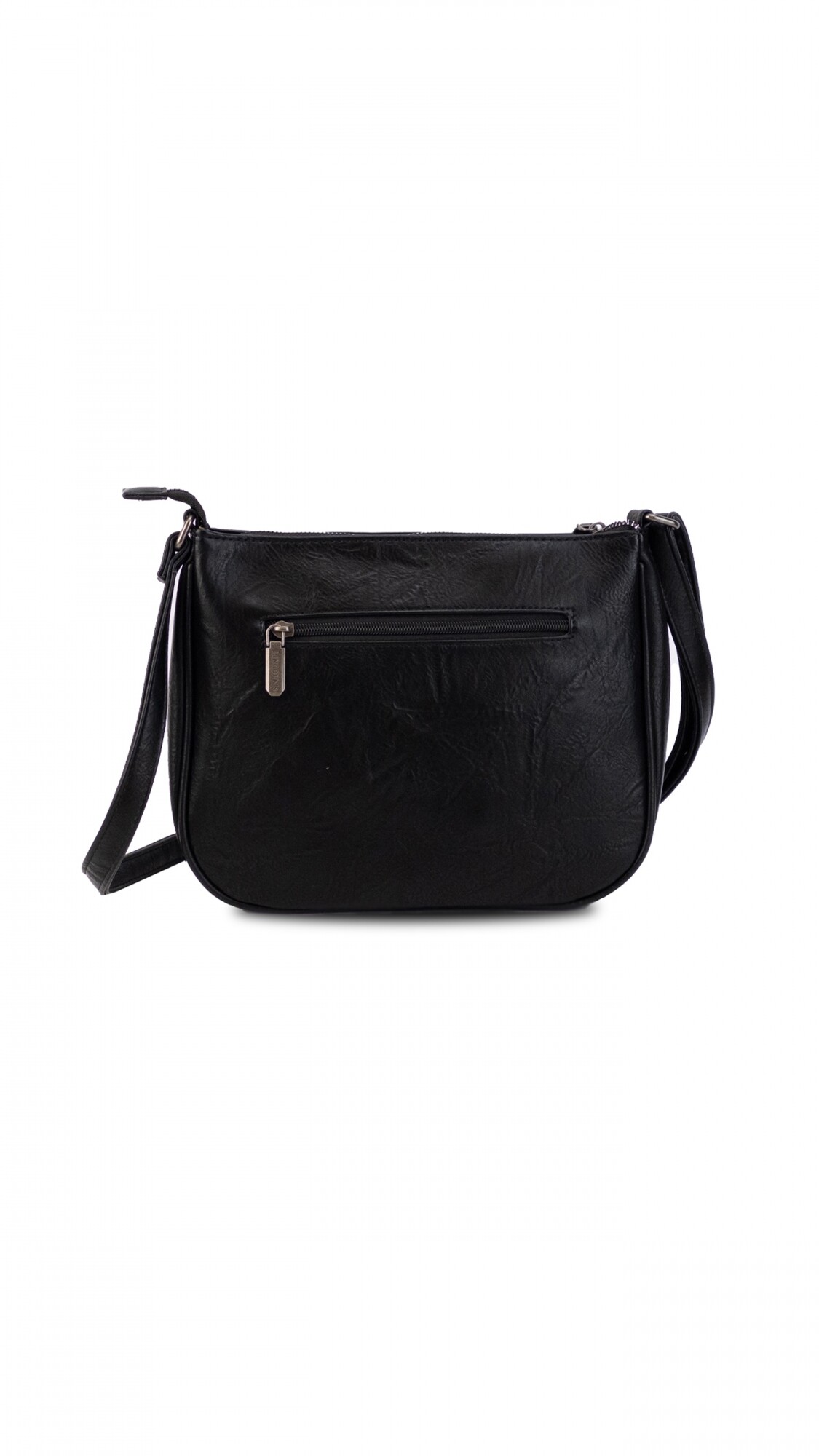 Bandolera con tapa y broche, bolsillo principal y bolsillos internos organizadores y cierre trasero para mayor seguridad. Diseño práctico y elegante, ideal para llevar todo lo necesario de forma cómoda y ordenada.