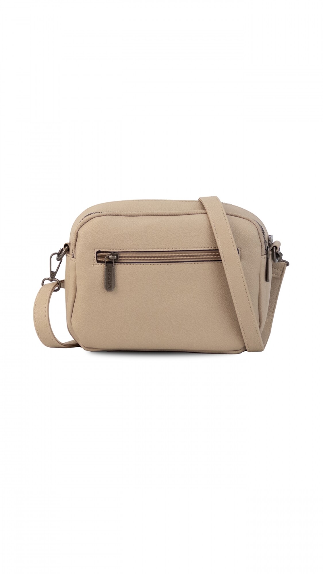 Bandolera con doble bolsillo principal, un bolsillo frontal y trasero. Incluye correa ajustable para mayor comodidad. Ideal para llevar lo esencial de manera práctica y segura.