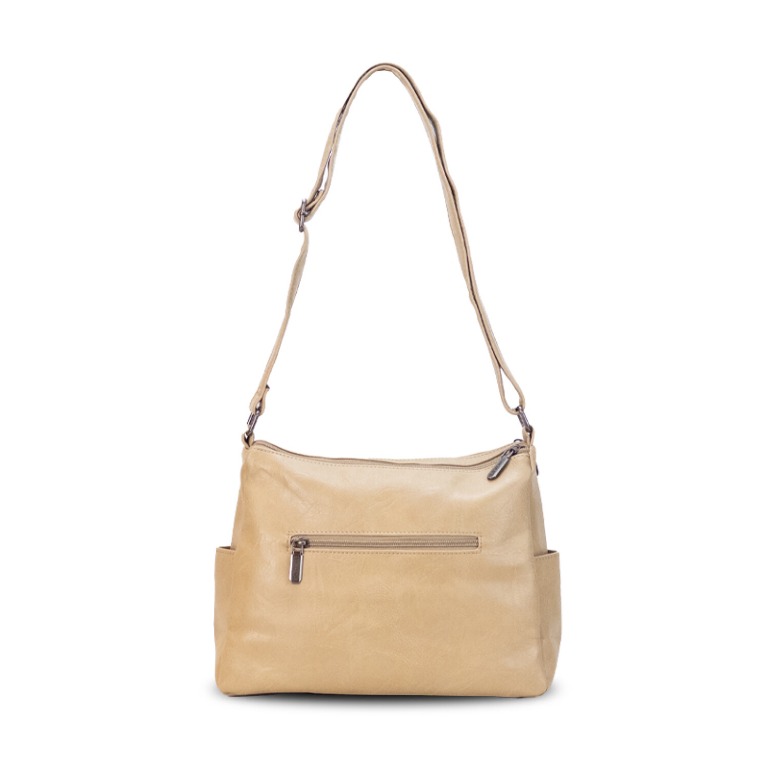 Bolsillo atrás con cierre. Correa larga regulable.