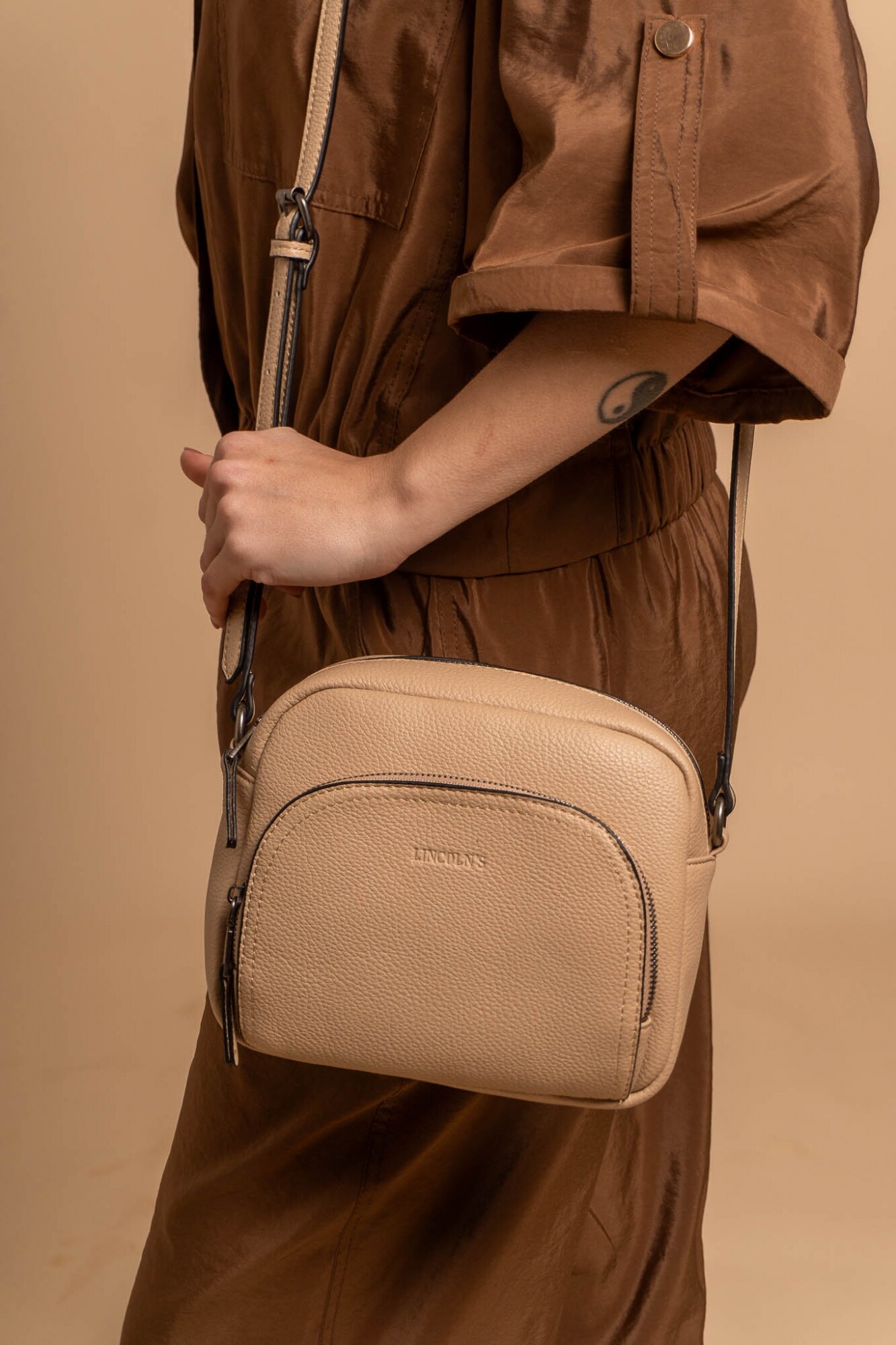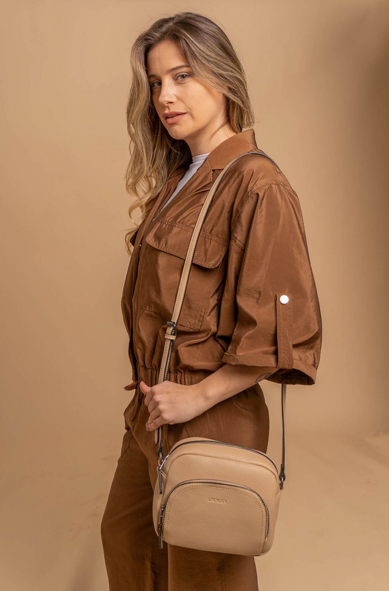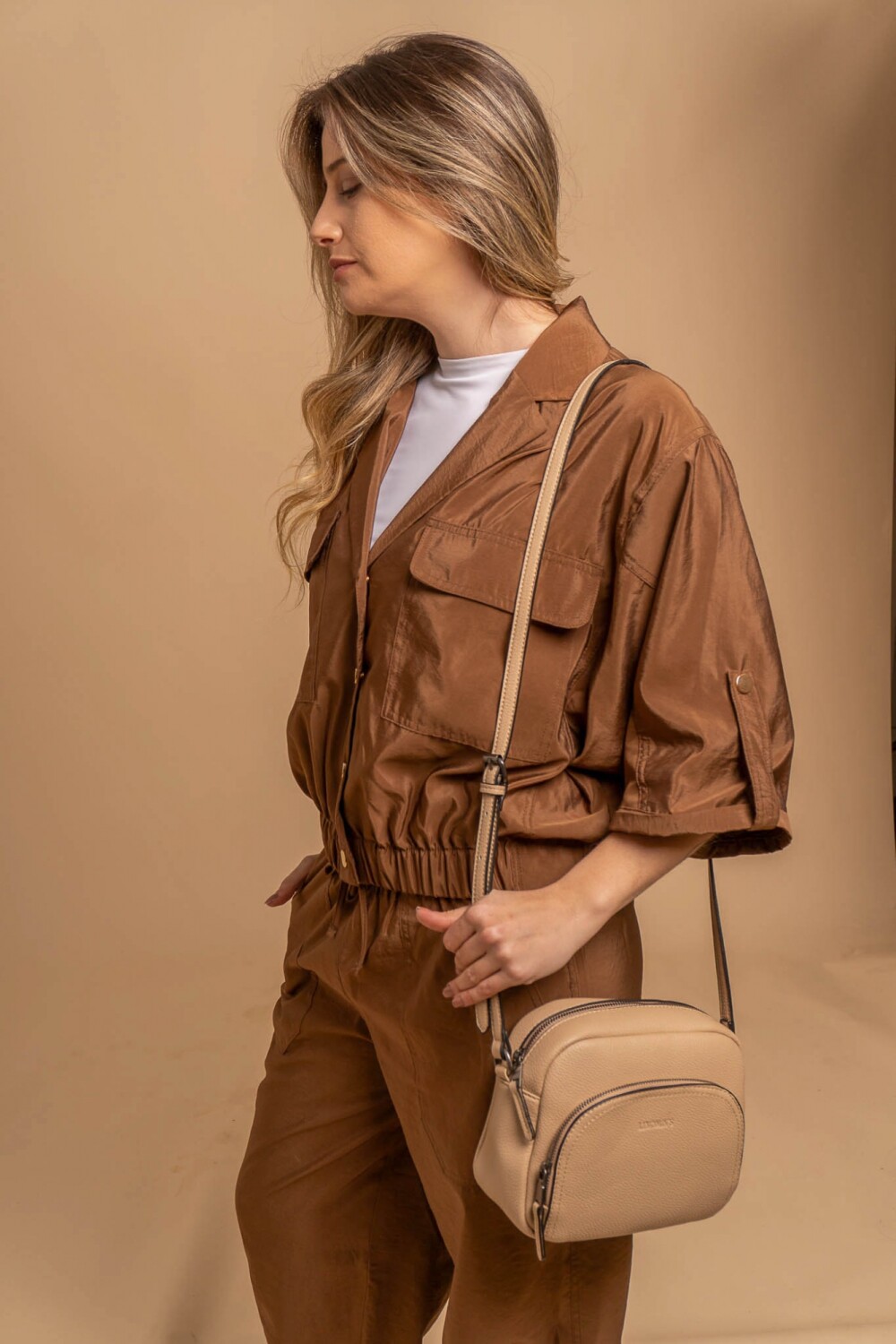 Bandolera de diseño compacto y elegante, con bolsillos frontal y cierre. Correa regulable, ideal para uso diario y combinar con cualquier look.