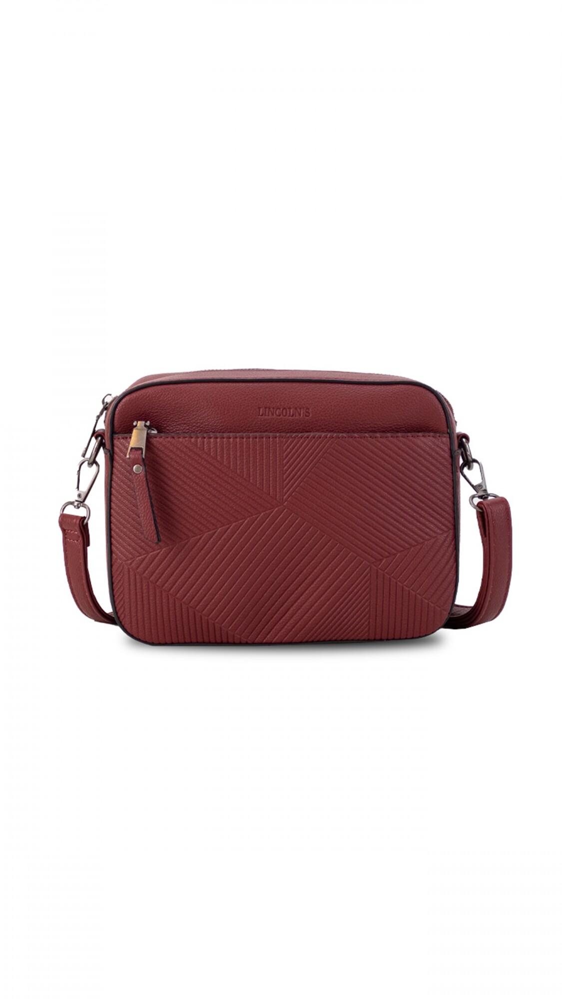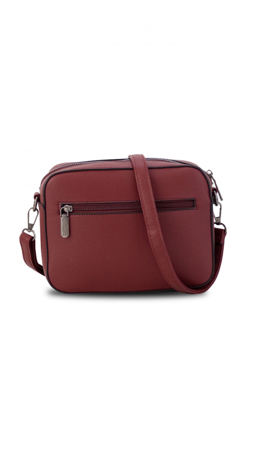 Bandolera elegante con practico bolsillo al frente de diseño texturado, con cierre de seguridad dorso y frente.