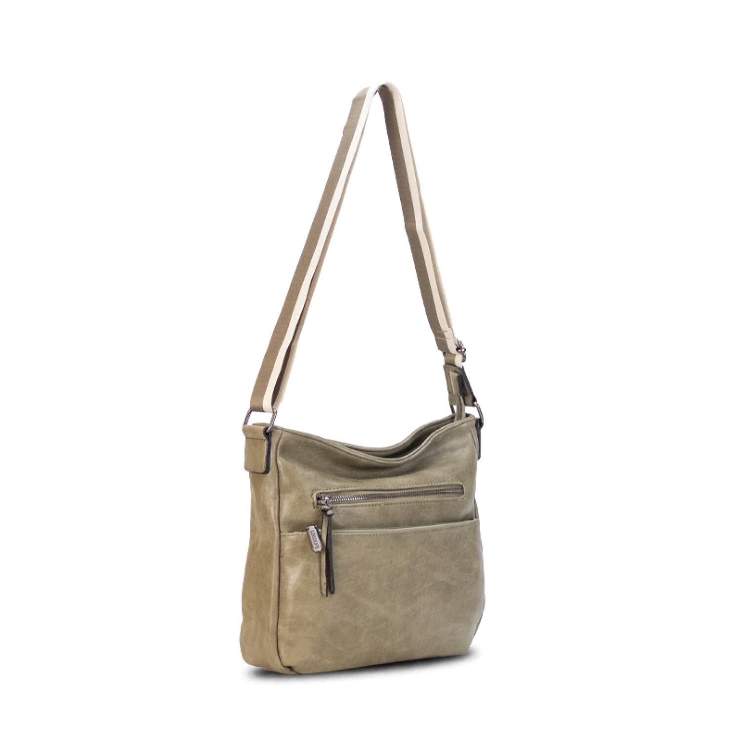 Bandolera con dos bolsillos de buena capacidad al frente. Apertura superior y cierre.