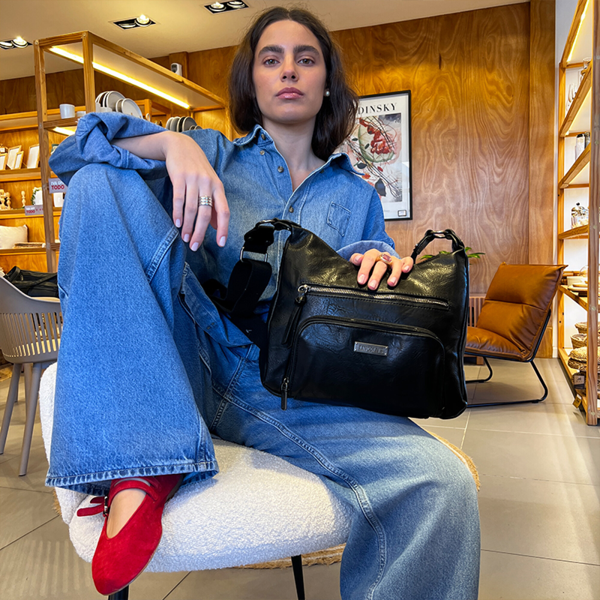 En la parte posterior cuentas con un bolsillo extra con cierre. Correa larga regulable a tono.