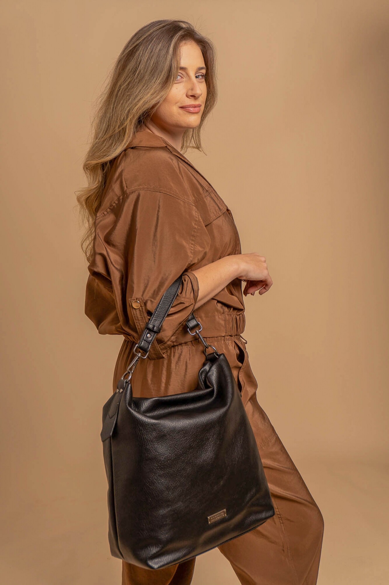 Cartera bandolera amplia con dos divisiones internas, asa corta fija y correa larga regulable. Confeccionada en símil cuero de alta calidad. Diseño versátil y cómodo, ideal para el uso diario.