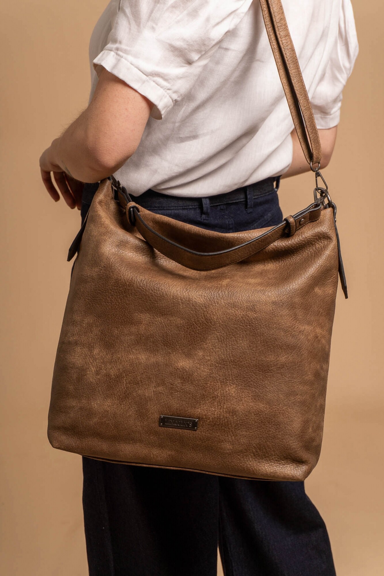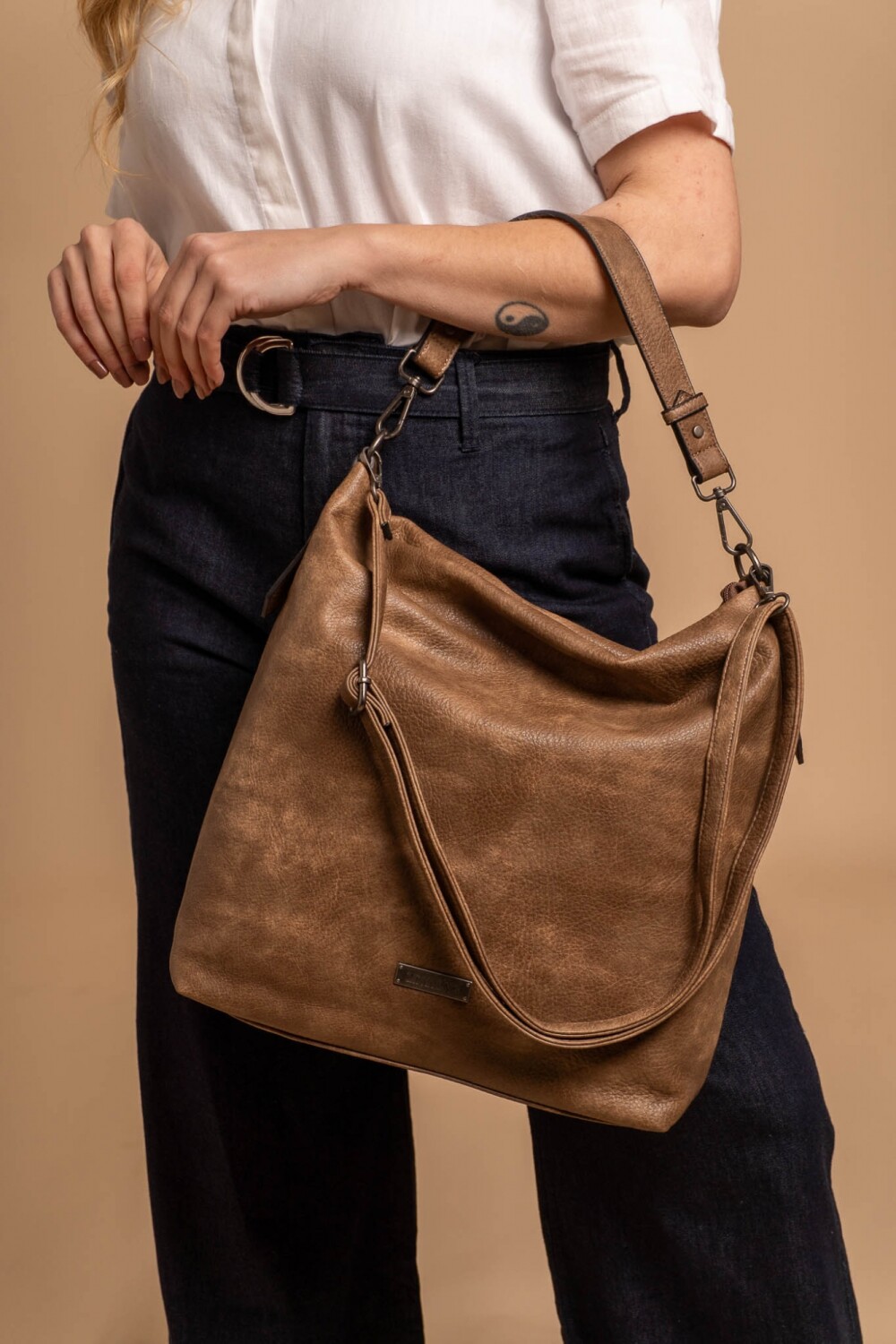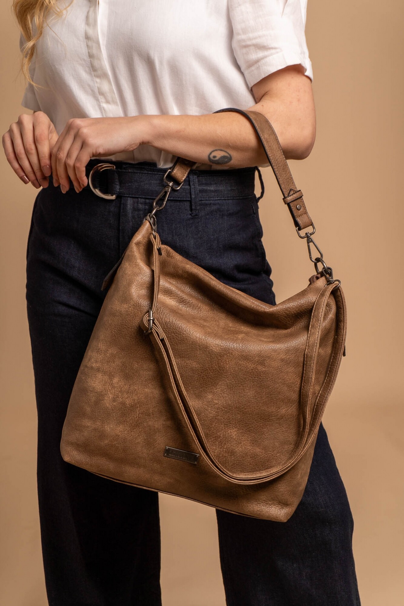 Cartera bandolera amplia con dos divisiones internas, asa corta fija y correa larga regulable. Confeccionada en símil cuero de alta calidad. Diseño versátil y cómodo, ideal para el uso diario.