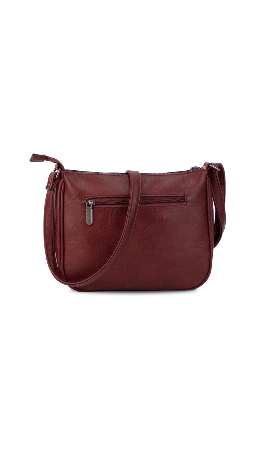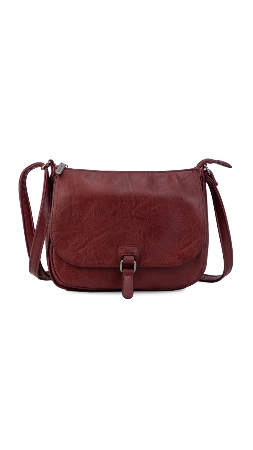 Bandolera con tapa y broche, bolsillo principal y bolsillos internos organizadores y cierre trasero para mayor seguridad. Diseño práctico y elegante, ideal para llevar todo lo necesario de forma cómoda y ordenada.