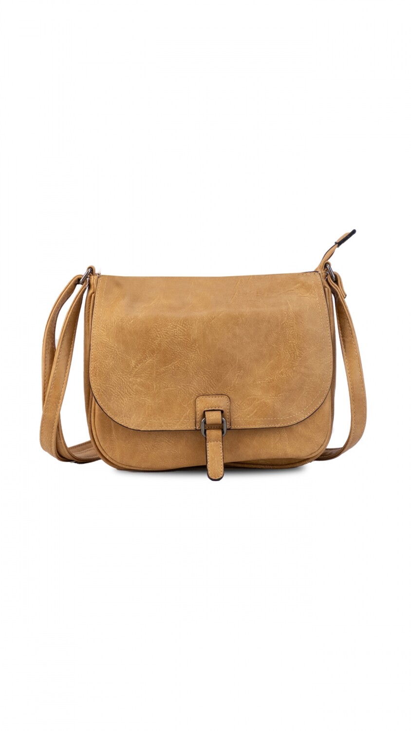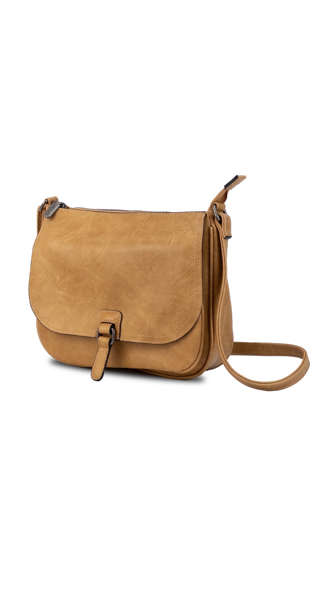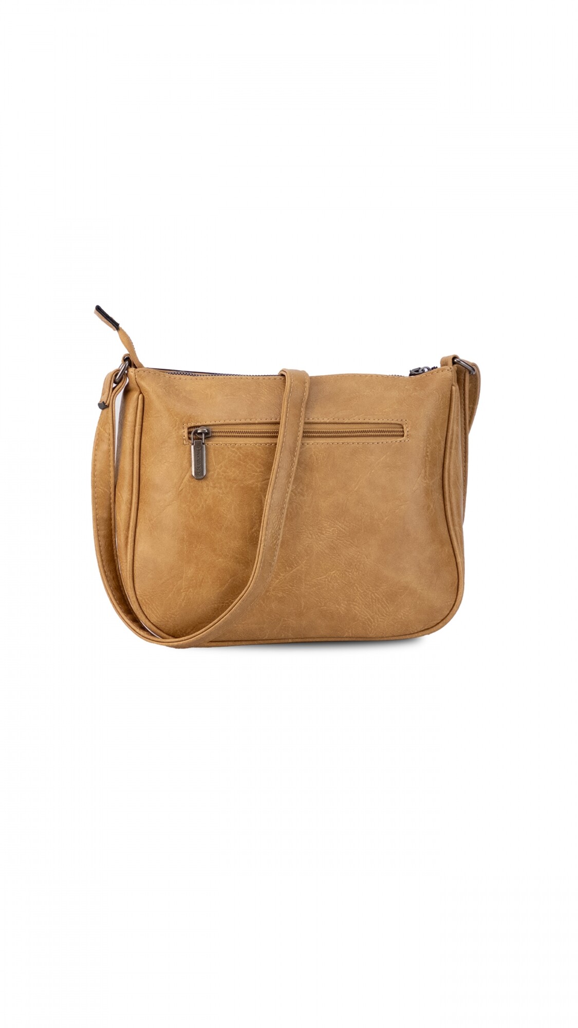 Bandolera con tapa y broche, bolsillo principal y bolsillos internos organizadores y cierre trasero para mayor seguridad. Diseño práctico y elegante, ideal para llevar todo lo necesario de forma cómoda y ordenada.