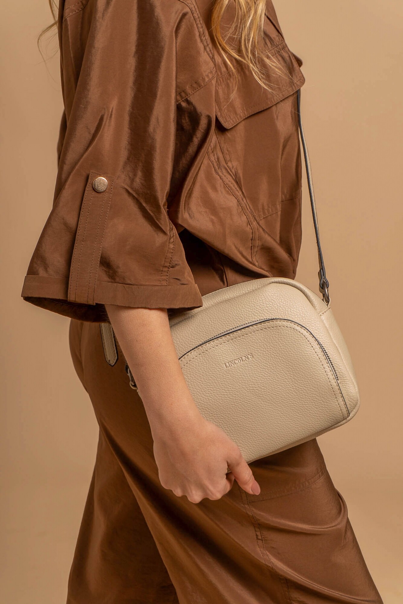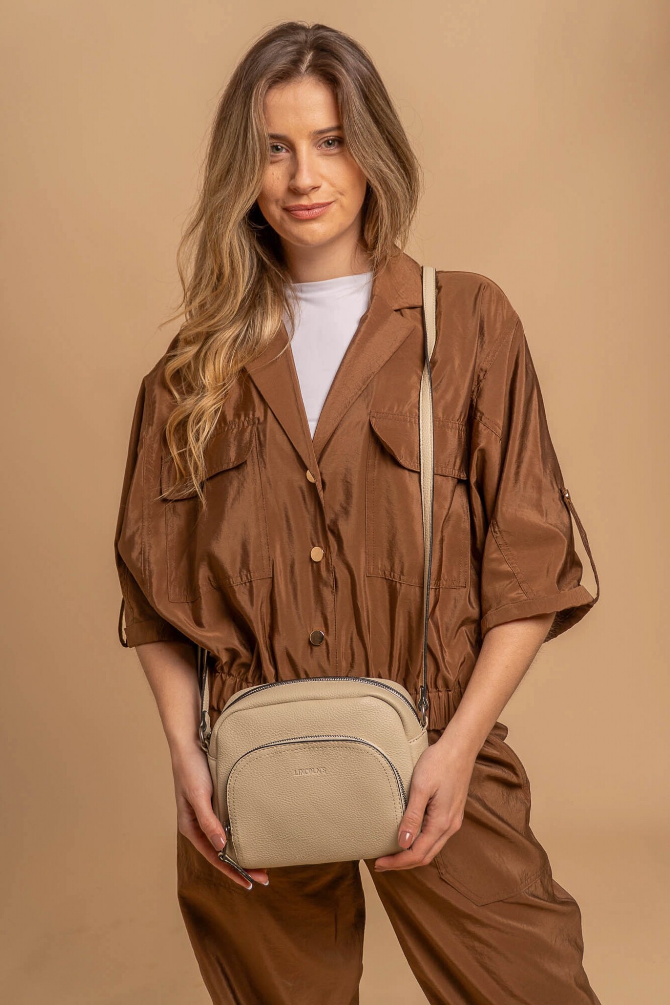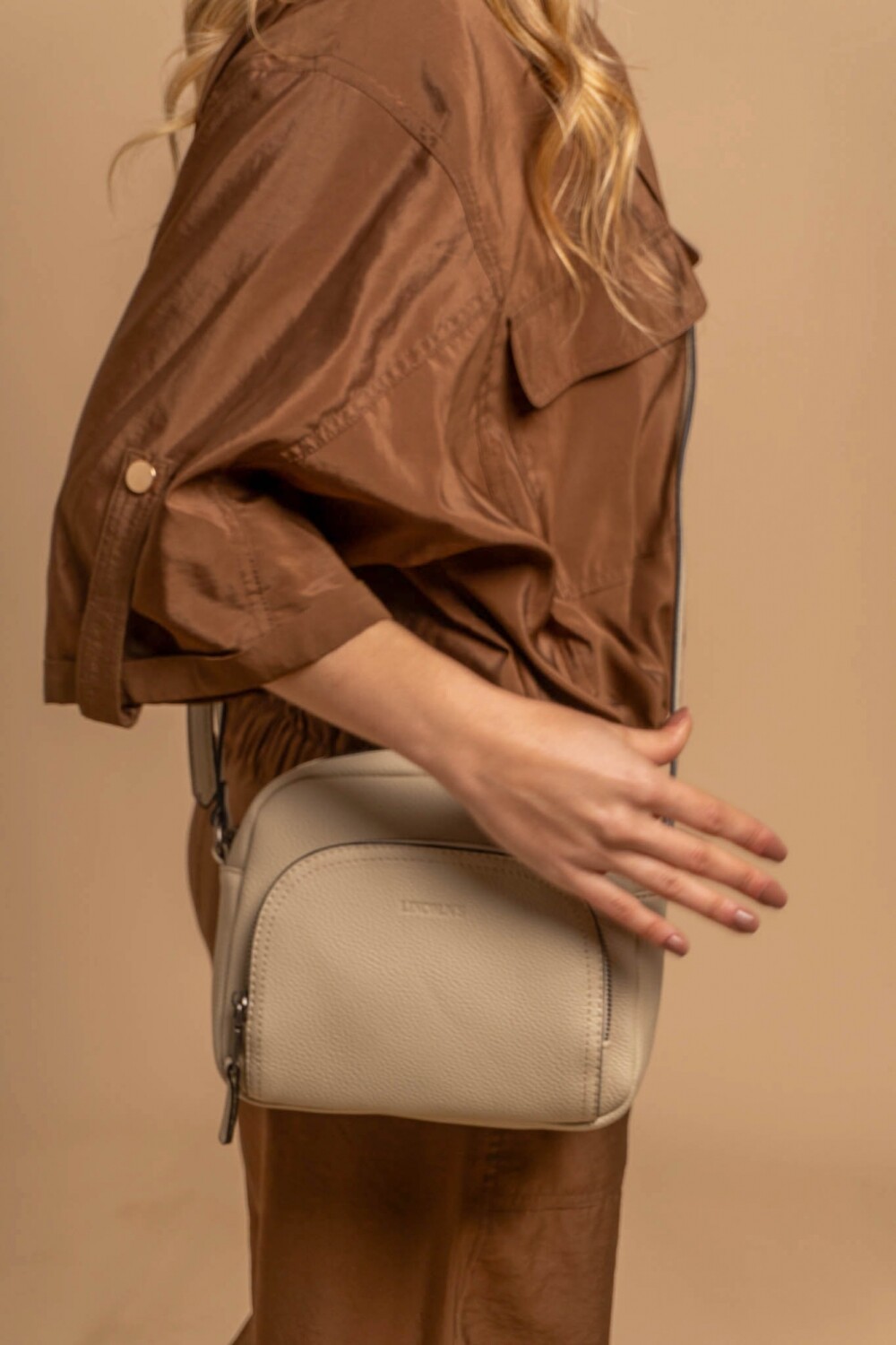 Bandolera de diseño compacto y elegante, con bolsillos frontal y cierre. Correa regulable, ideal para uso diario y combinar con cualquier look.