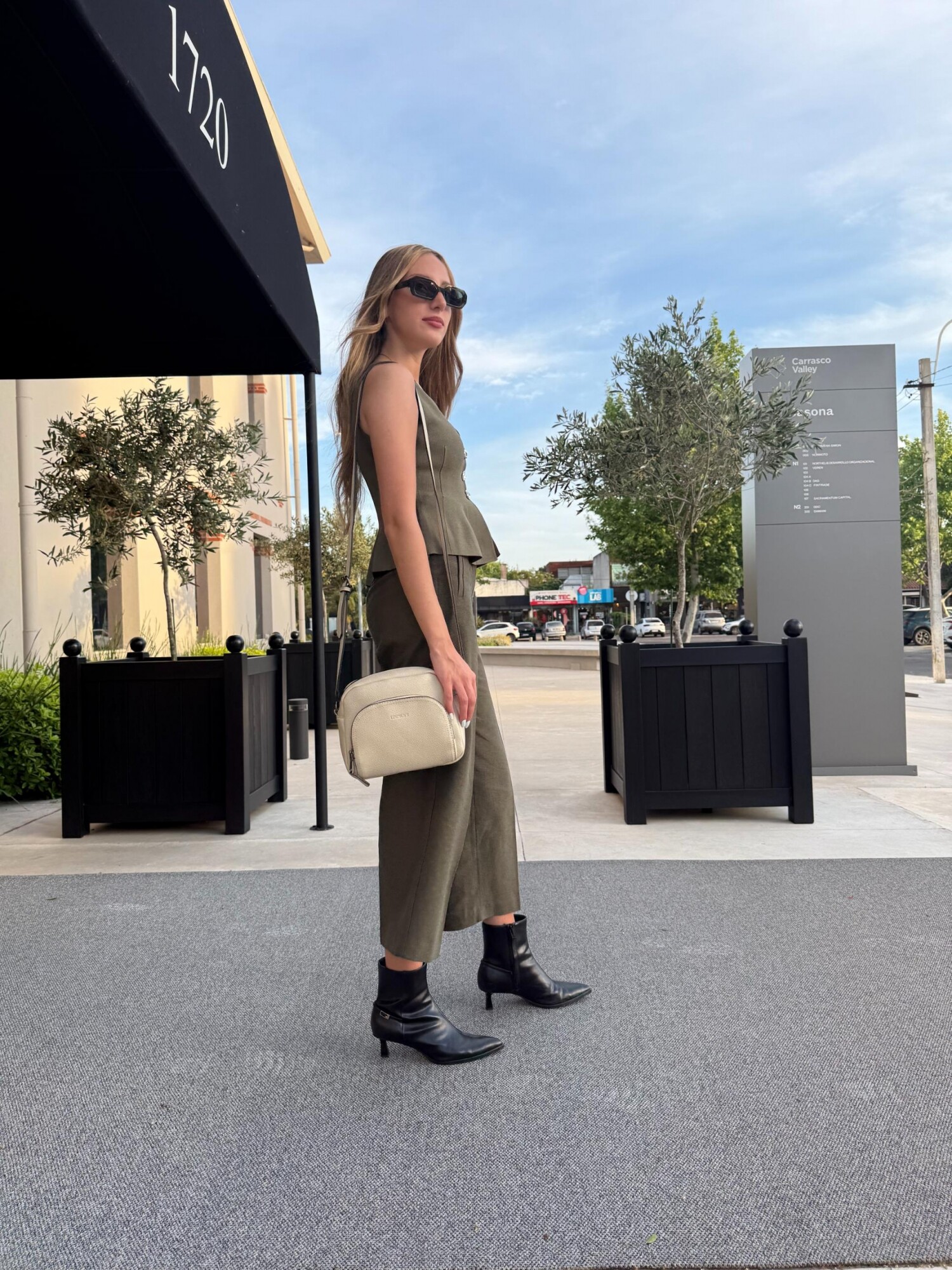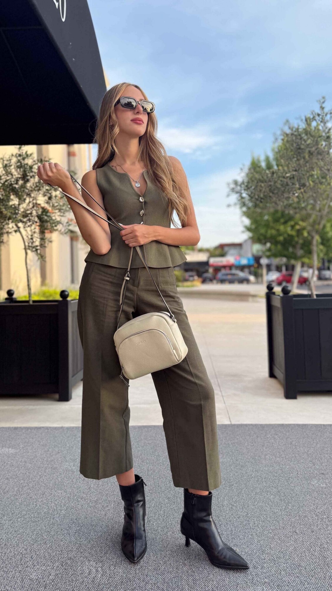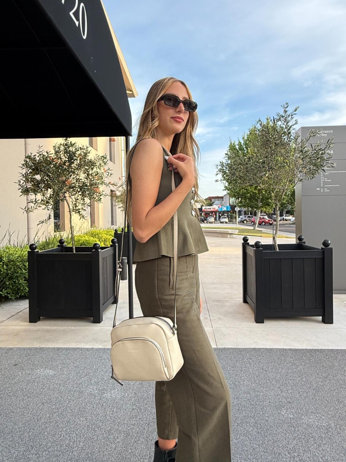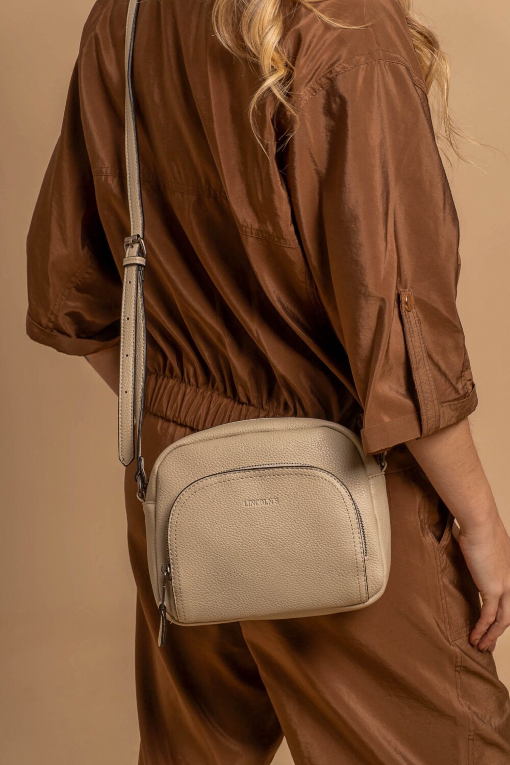 Bandolera de diseño compacto y elegante, con bolsillos frontal y cierre. Correa regulable, ideal para uso diario y combinar con cualquier look.
