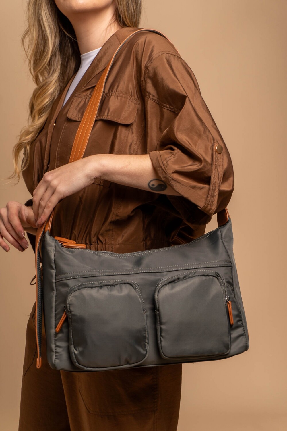 Cuenta con dos compartimientos principales, dos bolsillos con cierre y correa regulable con detalle de hebilla. Ideal para uso diario