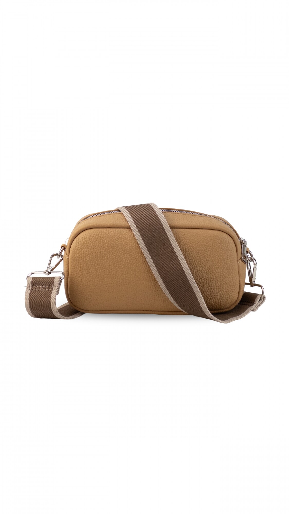 Bandolera compacta y moderna realizada en símil cuero, con correa regulable y monedero desmontable. Practica y perfecta para llevar lo esencial.