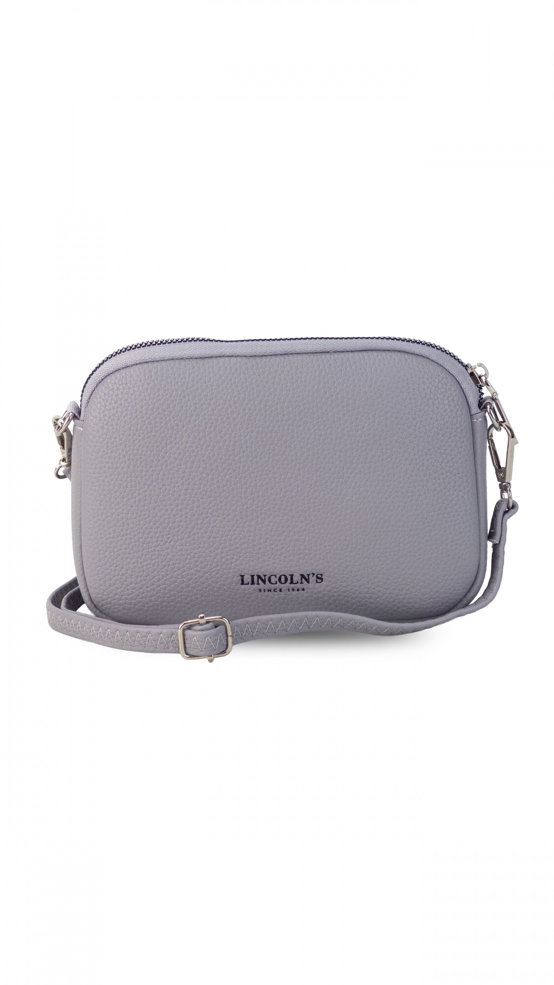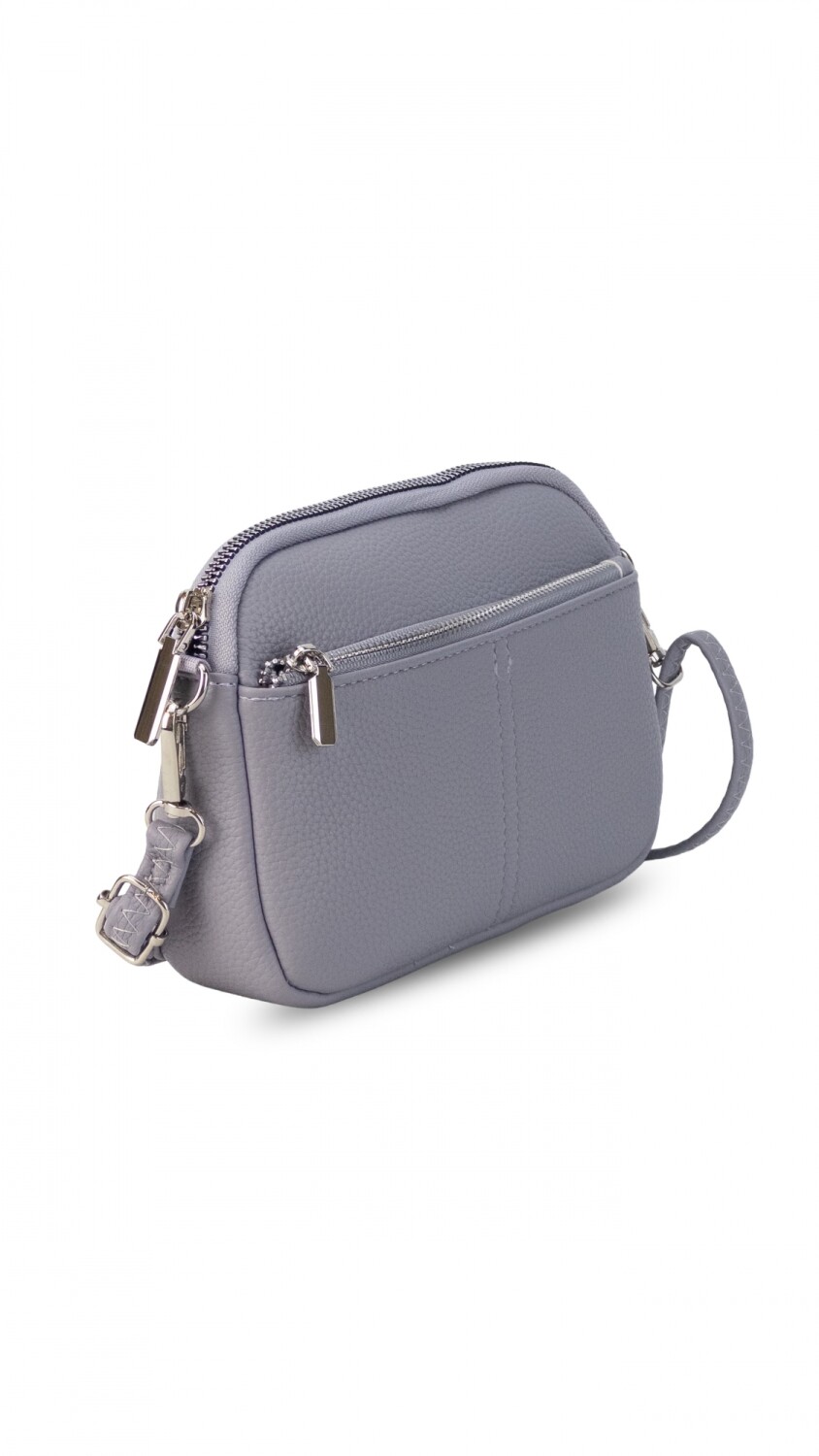 Bandolera pequeña y compacta en símil cuero, con correa fina ajustable del mismo material. Cuenta con bolsillo interno del mismo forro en seda y dos compartimientos con cierre.