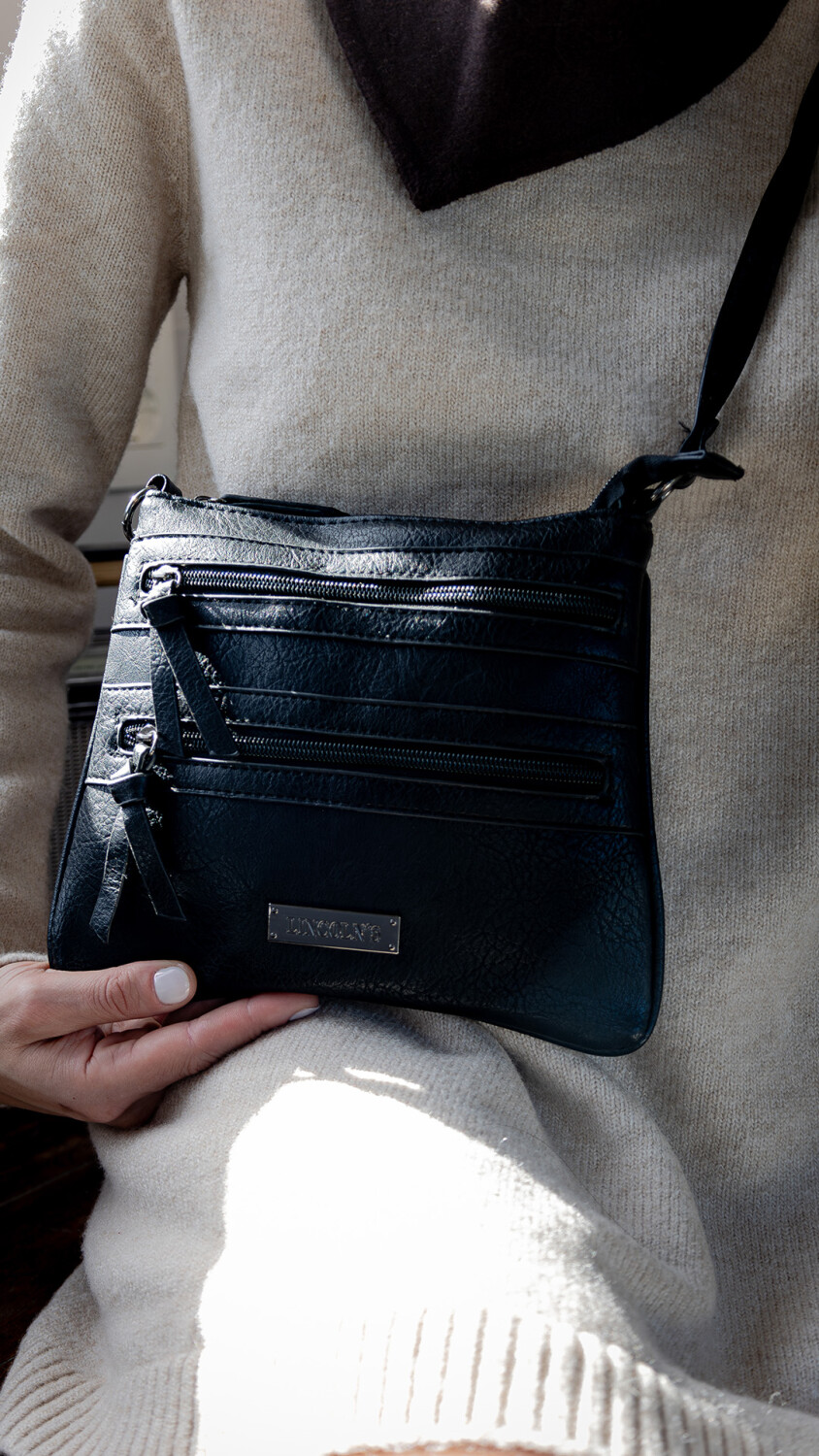 Bandolera con apertura superior con cierre metálico.