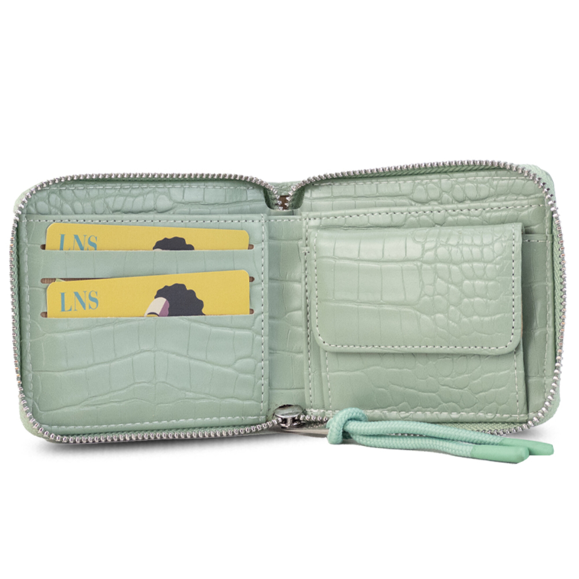 Su cierre permite una gran apertura. En su interior cuenta con visor y tarjetero.