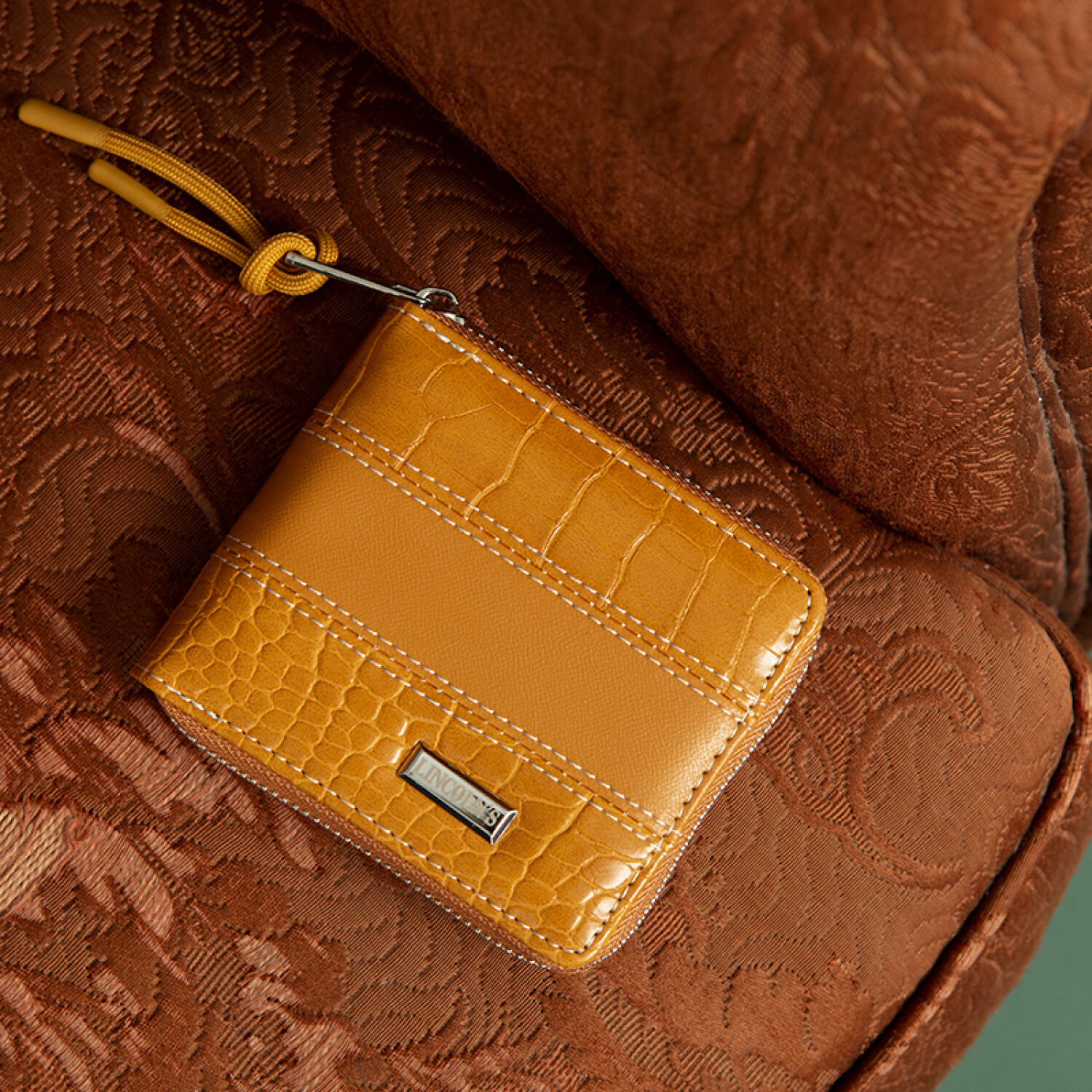 Su cierre permite una gran apertura. En su interior cuenta con visor y tarjetero.