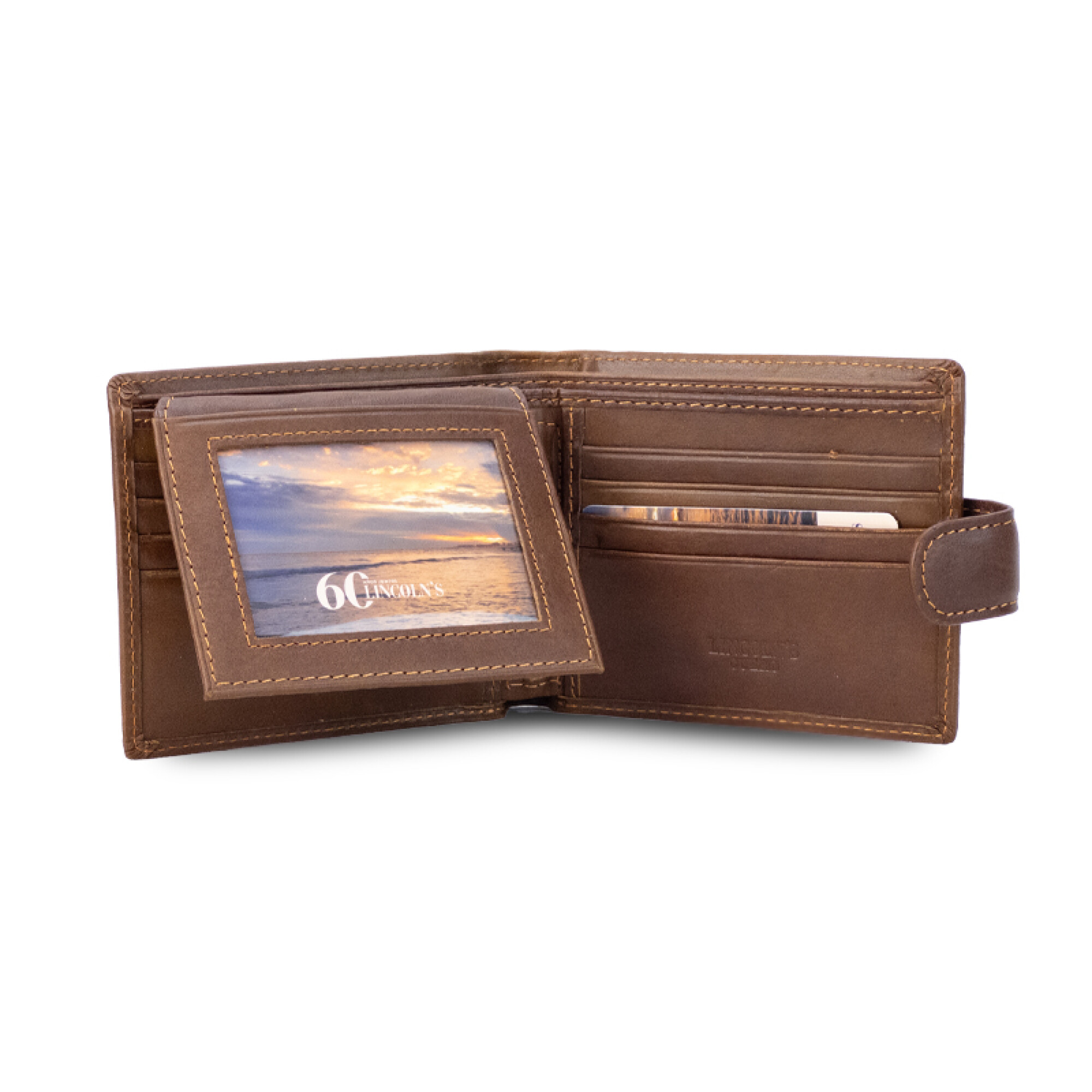 Lincoln's BILLETERA CUERO MORFEO - RON BILLETERA CUERO MORFEO - RON Billetera en cuero con presilla y broche a presión. Interior con volante superior y visor. Doble repartición para billetes, tarjeteros, bolsillos y monedero con cierre. 1004100261131