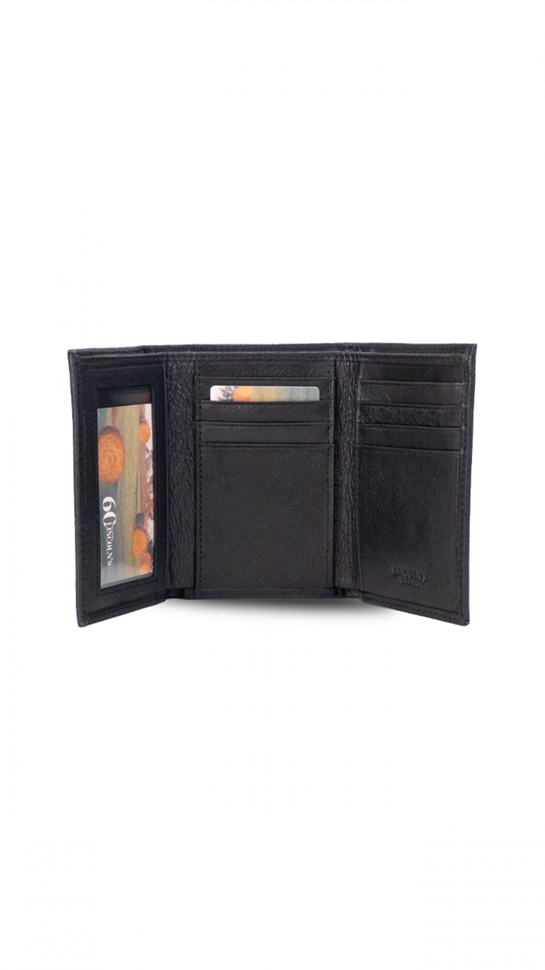 Billetera de cuero 3 cuerpos, diseño vertical, 2 divisiones para billetes, espacio por tarjetas x 8 y con visor.