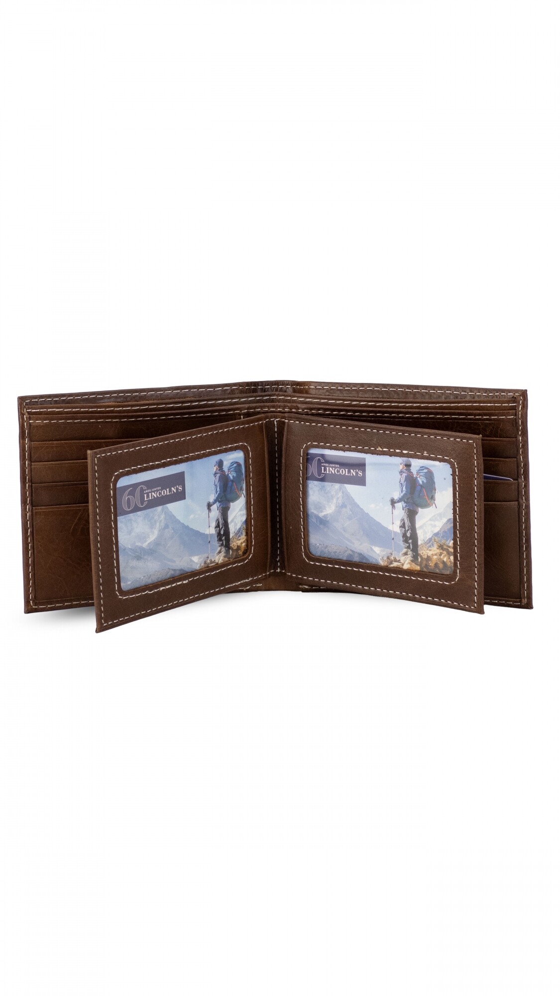 Billetera en cuero. Interior con doble visor, tarjeteros y doble repartición para billetes.