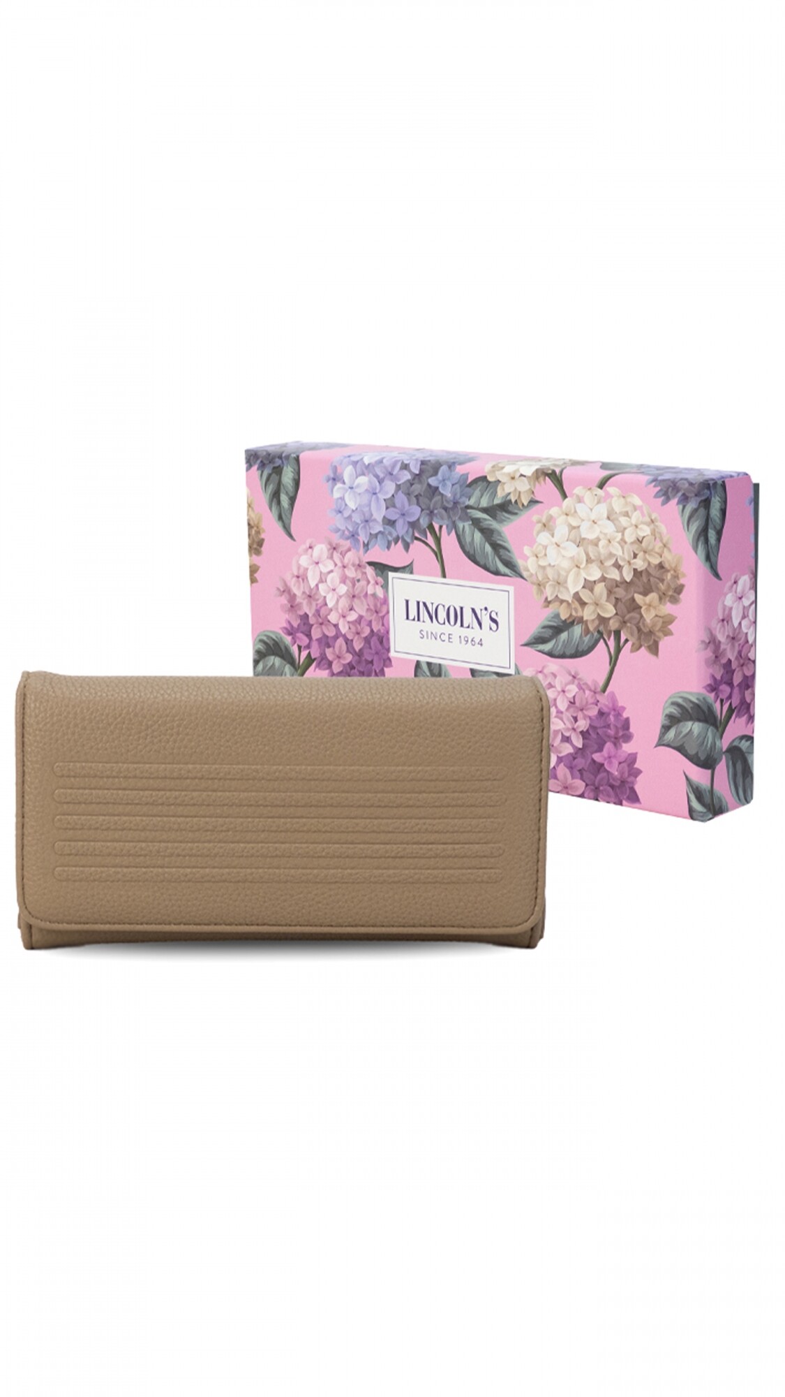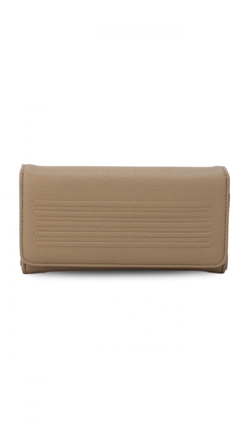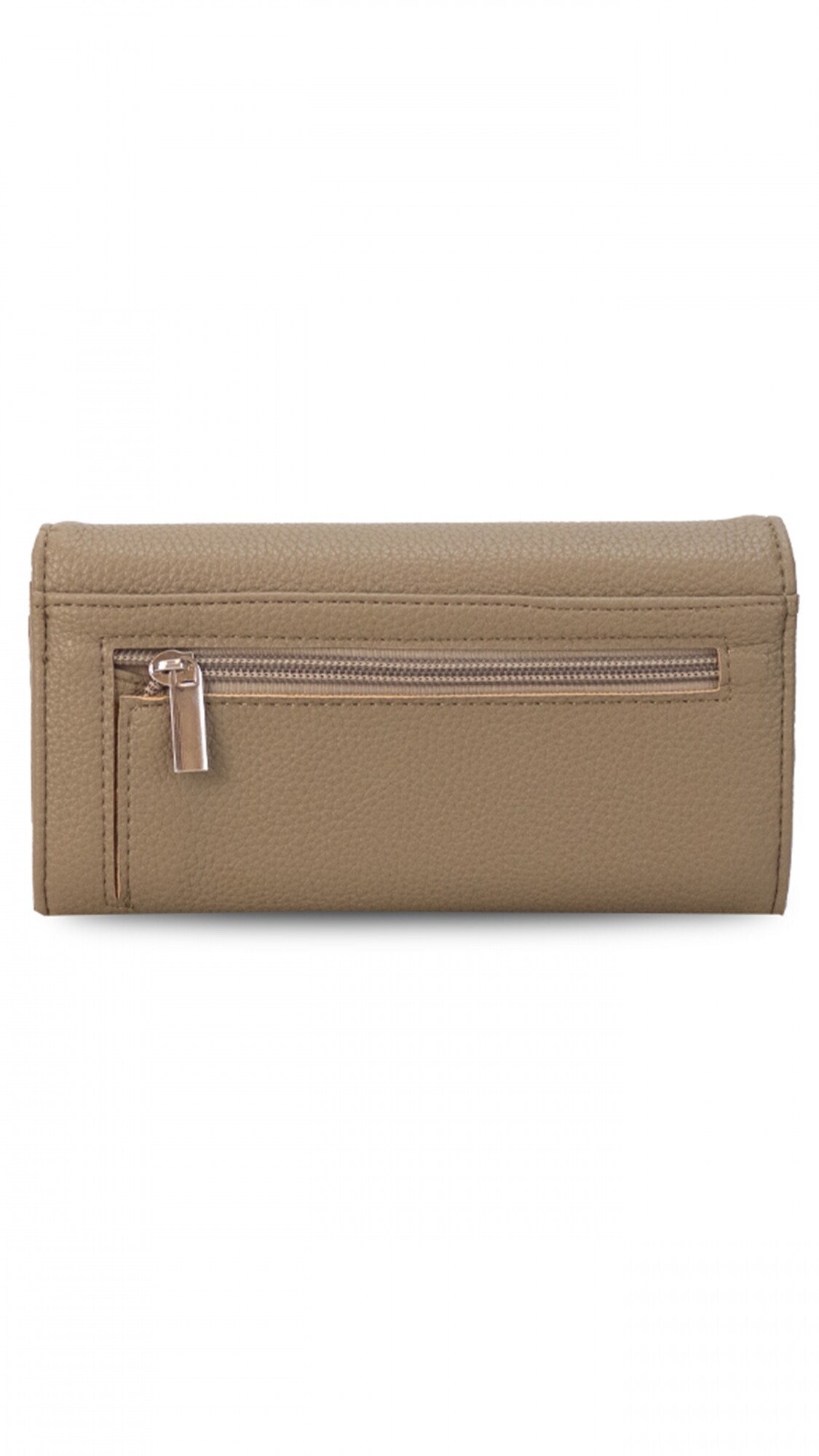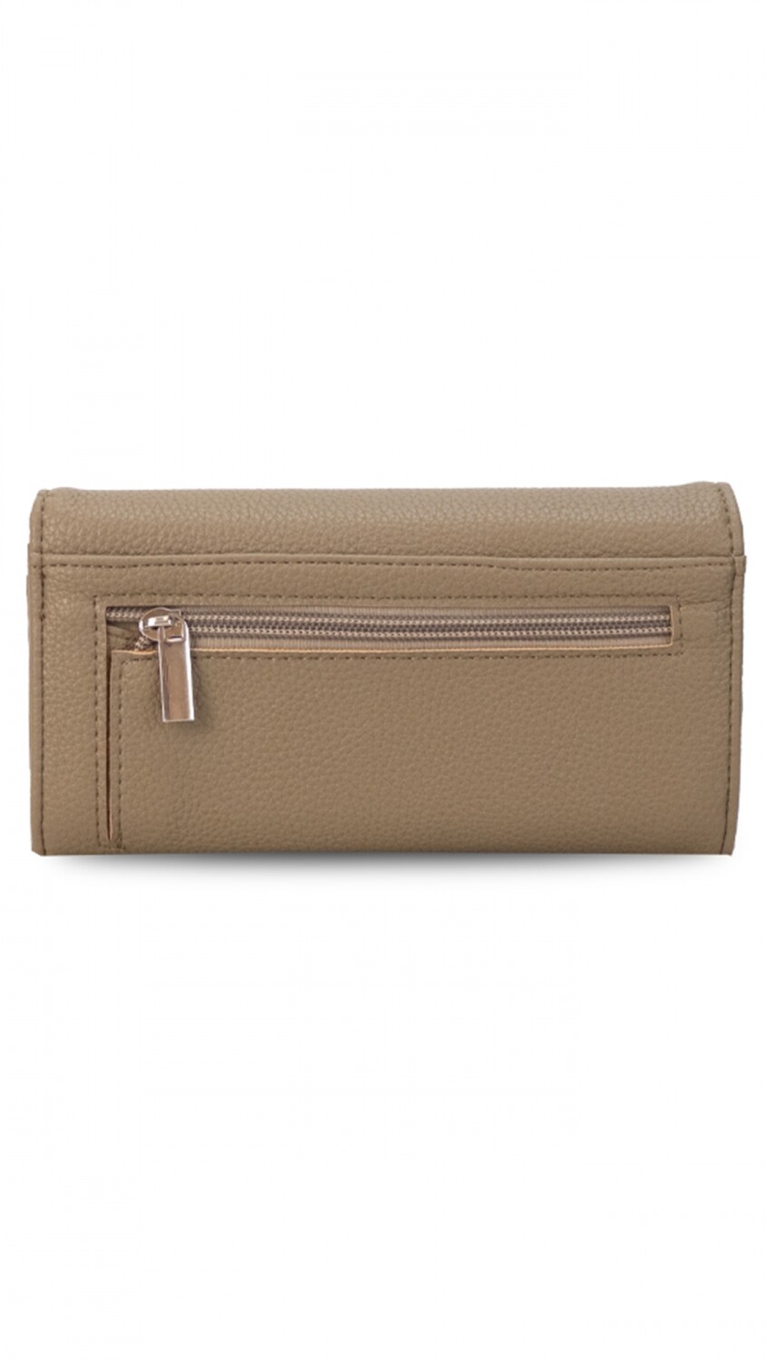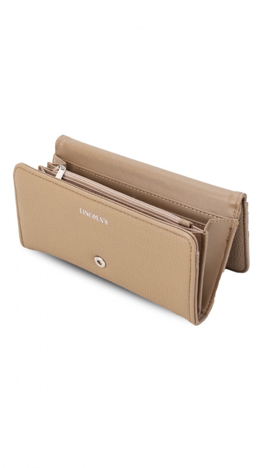 Compartimento posterior incluye monedero con cierre, tarjeteros y billetes.