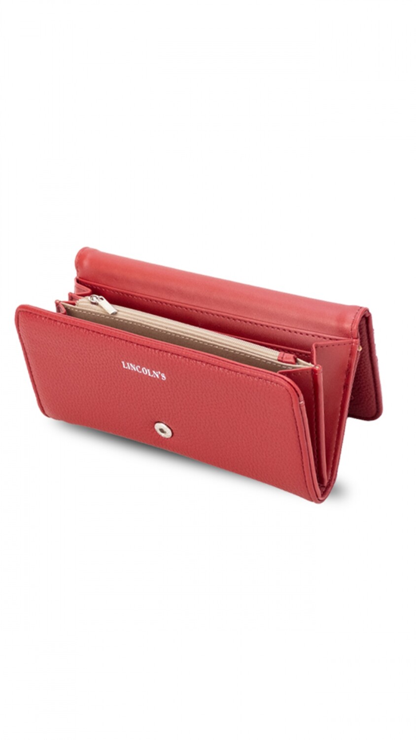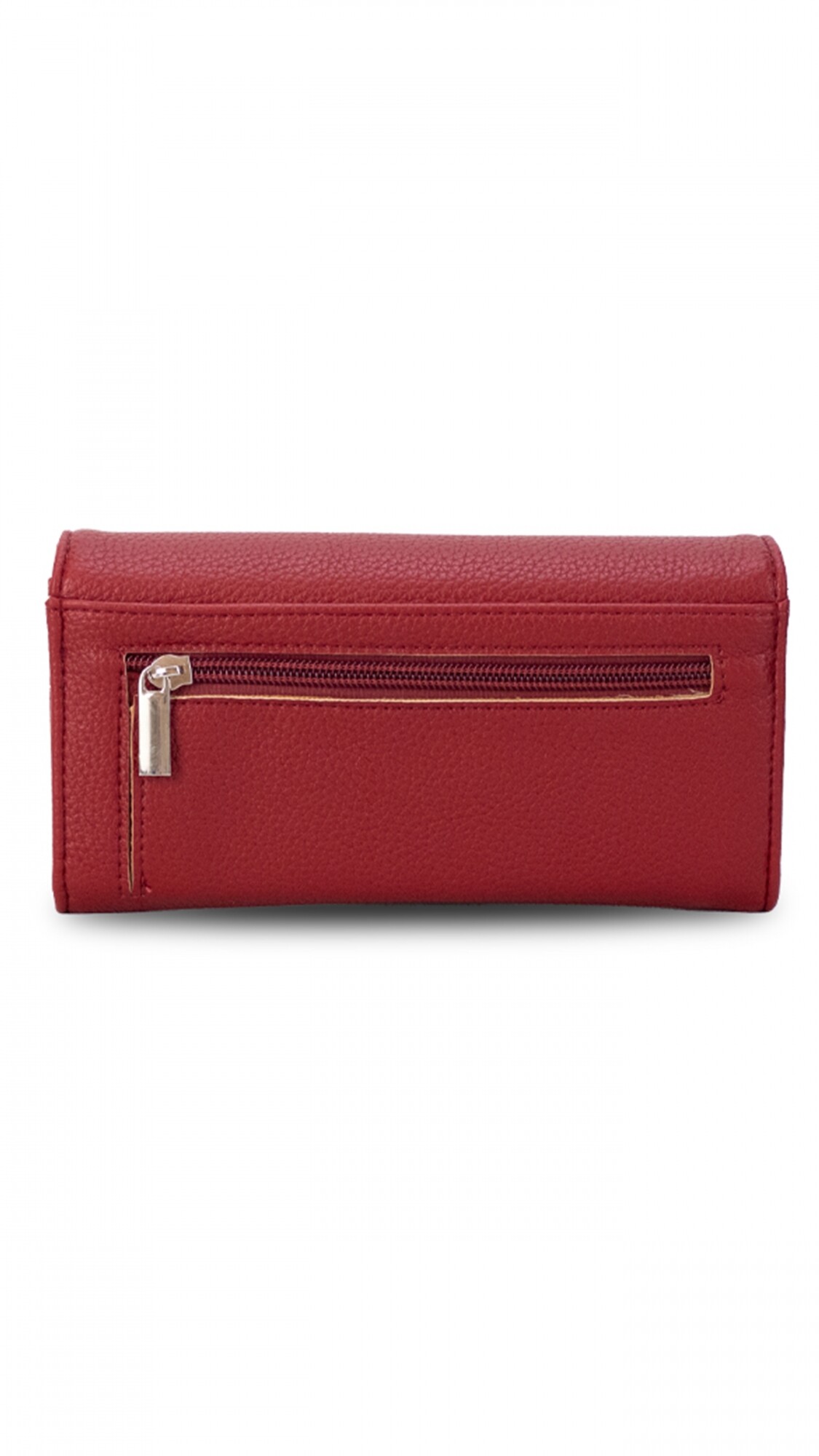 Compartimento posterior incluye monedero con cierre, tarjeteros y billetes.