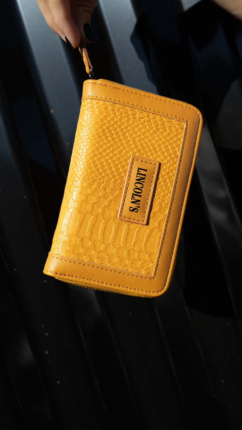 Billetera mediana en símil cuero con textura croco.